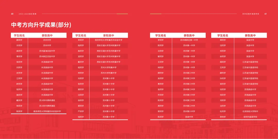 办学至今,百美外国语学校共有6届中考毕业生,历年期中期末考、区统考成绩遥遥领先同类学校,平均超过65%的毕业生录取至四星高中。其中,不乏录取苏州中学、星海中学、木渎中学、苏大附中费孝通班等等各区头部高中。