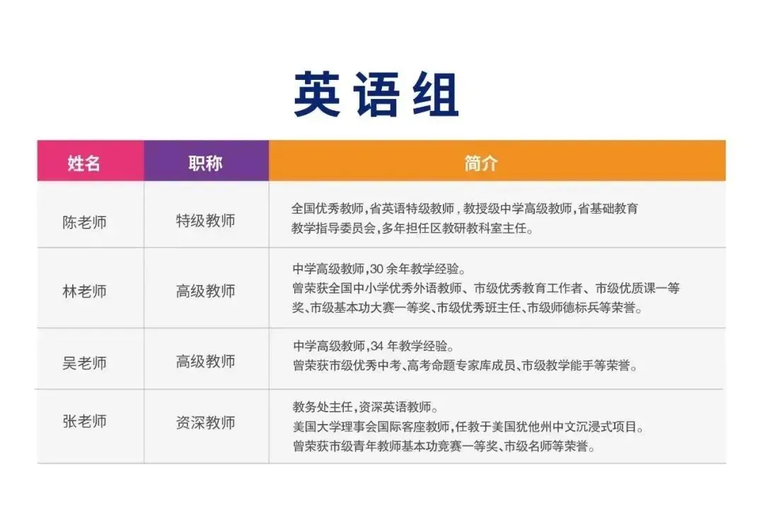 雄厚的师资保障学生成绩提高,百美外国语学校拥有一支实力雄厚的高水平师资队伍,以骨干教师为主,其中不乏全国模范教师、省级学科带头人、市区级学科带头人、特级教师等。现有专任教师硕士占比高达65%,中高级职称教师占专用教师30%。
