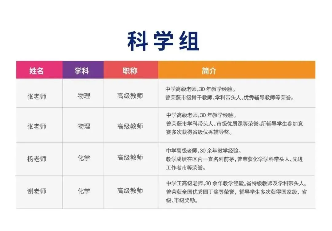 初中部教师全部具有丰富的教学经验,绝大多数具有初三教学经验且所带学生中考成绩突出。初中部语文、数学、英语具备市级以上带头人,每门学科确保有1位以上来自本地教研室有历年中考经验的老师把关。每班学生人数不超过30人,语数英等主课教师辅导晚自习保障学生“问题不过夜”。