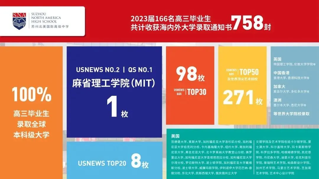 SNA 2023届166名高三毕业生目前共计收获海内外大学录取通知书758枚: