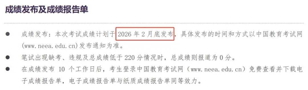 在成绩发布 10 个工作日后 ,考生登录中国教育考试网(www.neea.edu.cn)免费查看并下载电子成绩报告单,电子成绩报告单与纸质成绩报告单同等效力。