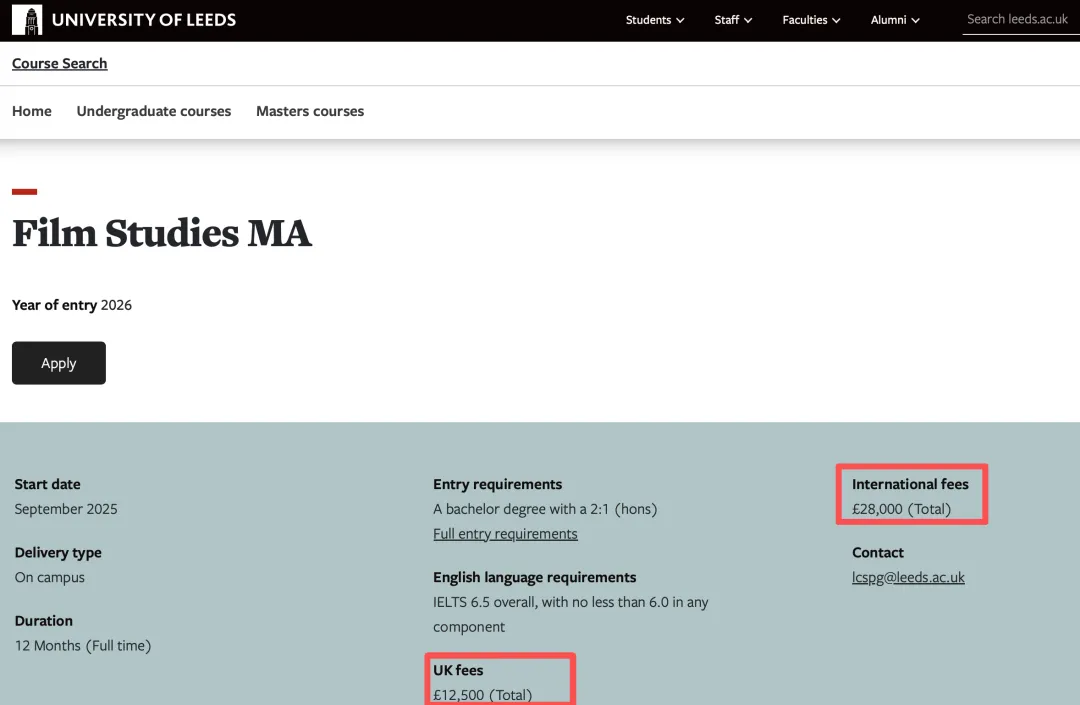硕士就安然无恙了吗?并不,利兹大学传媒硕士学费已达 2.8 万英镑(约 26 万人民币),且国际生学费普遍是本土生的 2 倍起。想要花小钱就进 QS 前 100 院校的路子越来越难实现。