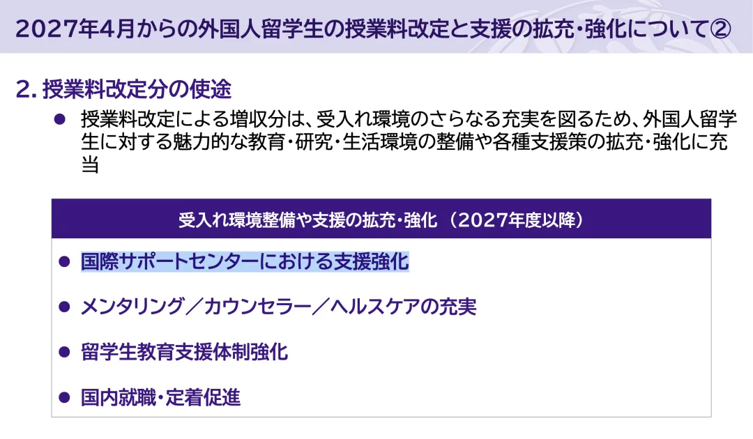 「关于 2027 年 4 月起外国留学生学费调整及支援扩充与强化的说明」