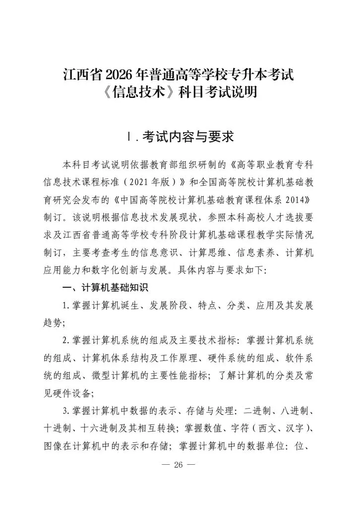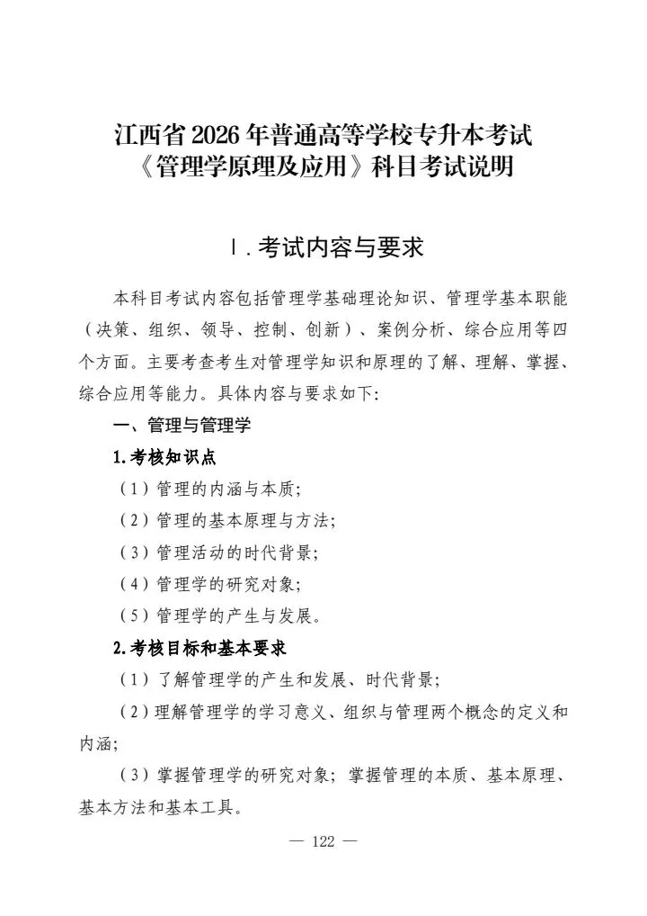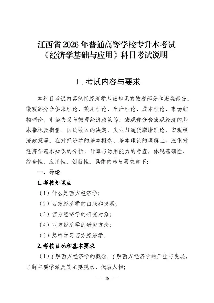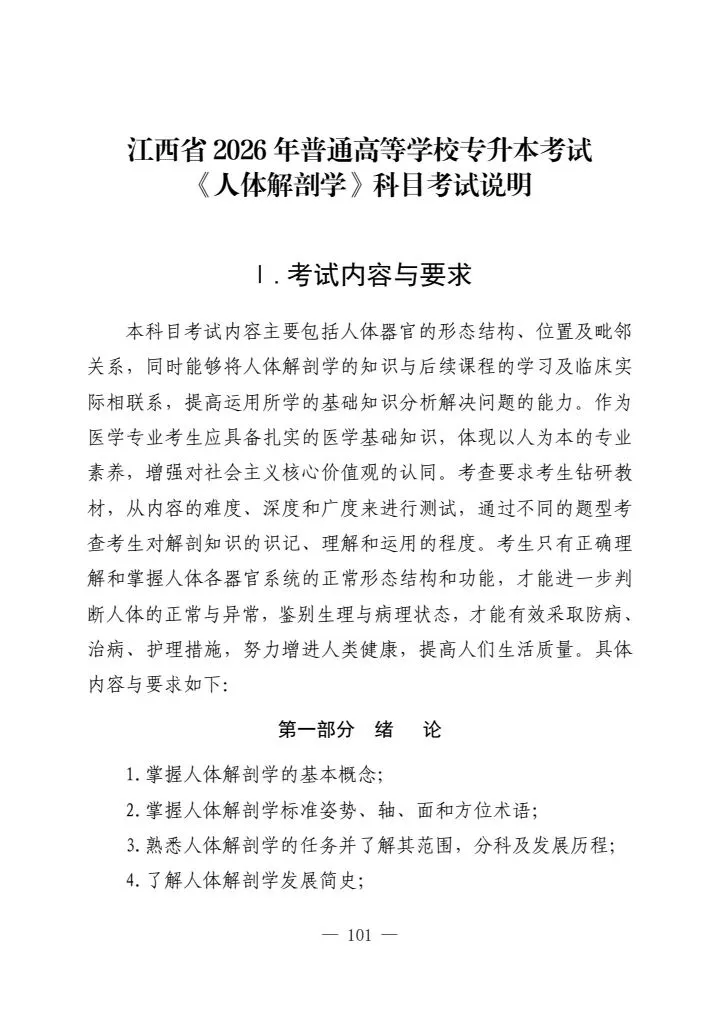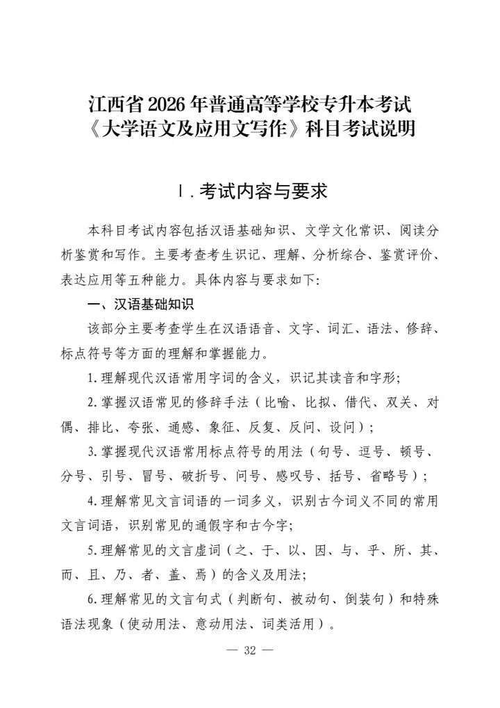 >江西省2026年普通高等学校专升本考试各科目考试说明