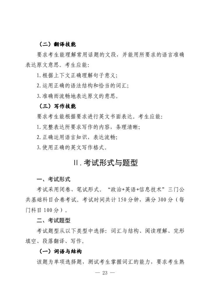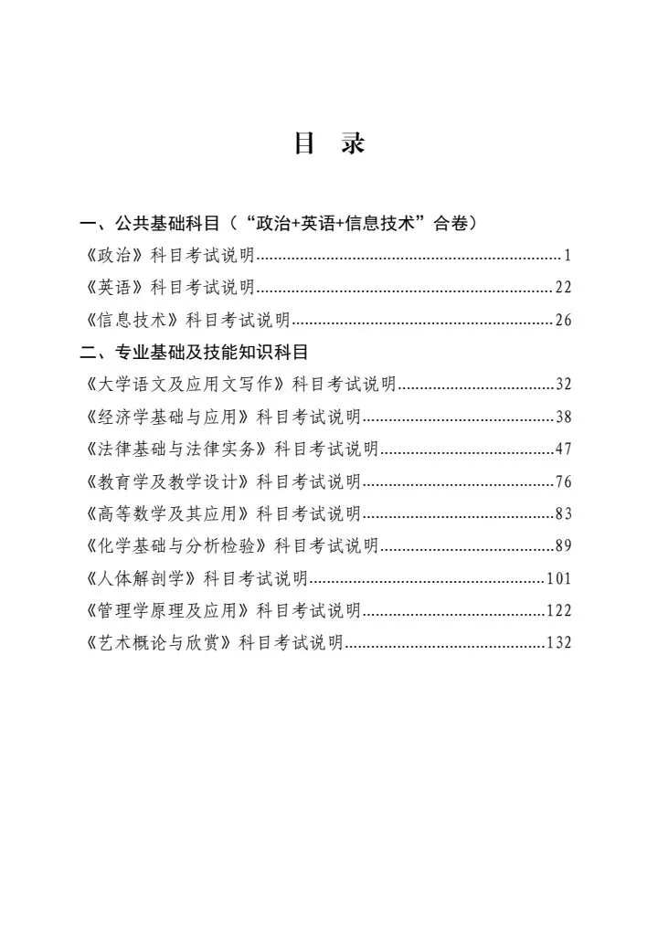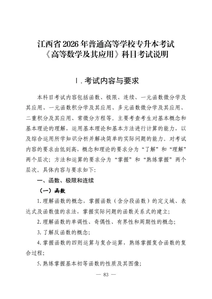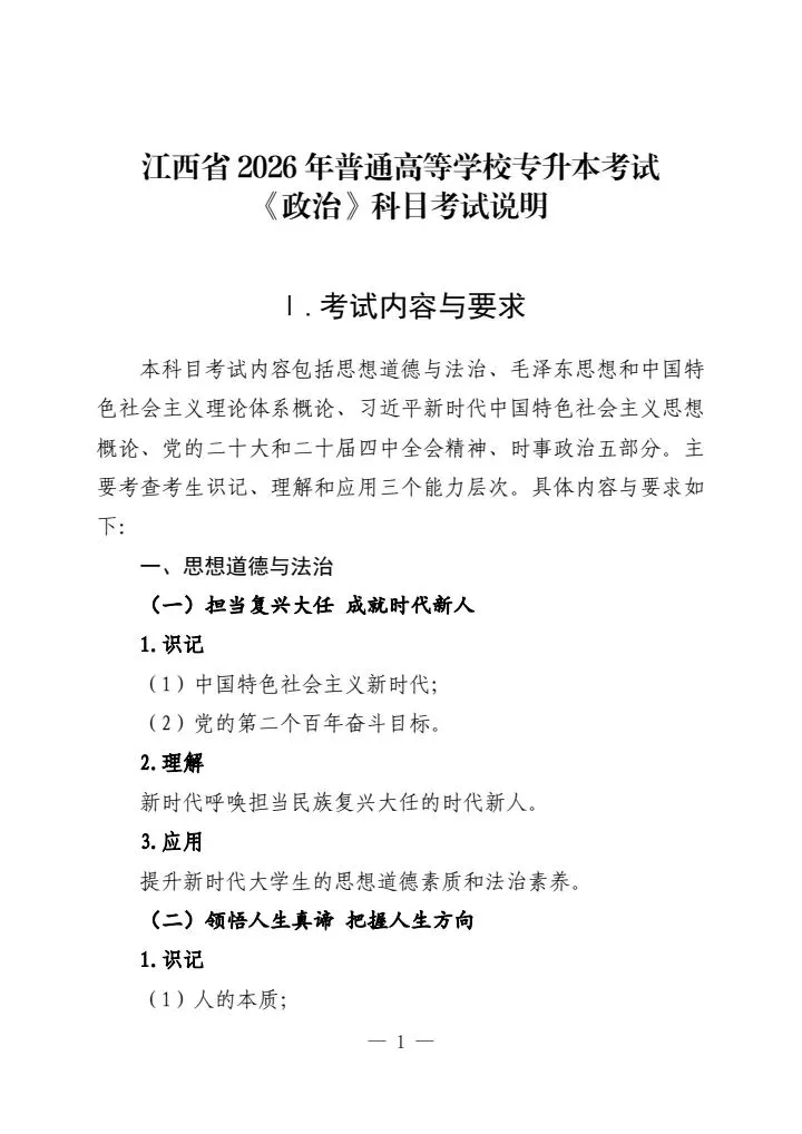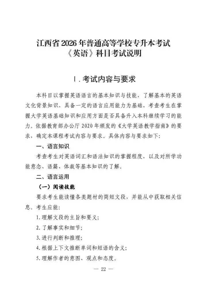 >江西省2026年普通高等学校专升本考试各科目考试说明