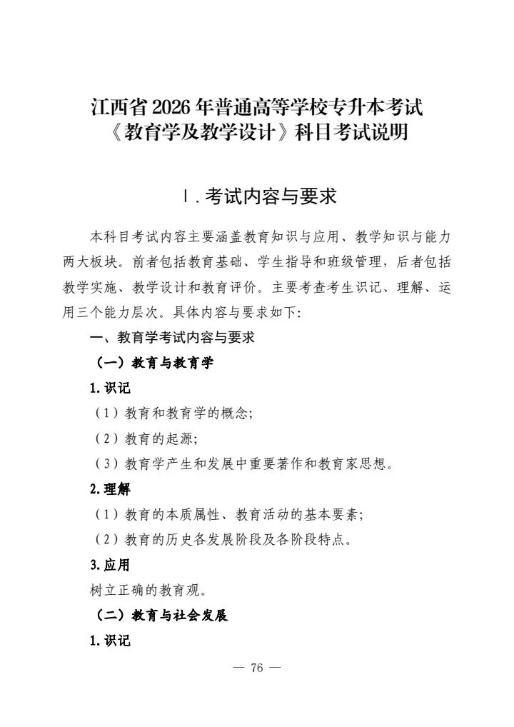 江西省2026年普通高等学校专升本考试各科目考试说明
