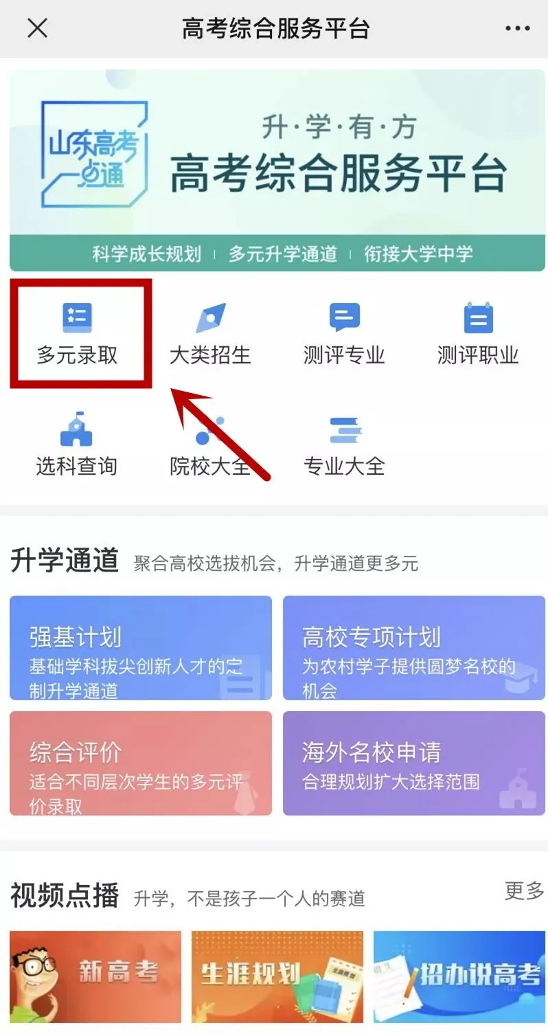 前面我们提到了,了解多元录取方式,可以说是为考生们在升学方式上提供了更多选择的可能性。在“高考综合服务平台”的【多元录取】核心功能区,我们根据新高考下各类录取模式,对招生政策,高校招生计划、政策解读等进行了分类整理,包括强基计划、综合评价招生、保送生、高校专项计划、高水平运动队、高水平艺术团、艺术类专业招生等,基本涵盖夏季高考各类招生录取模式,方便考生选择。
