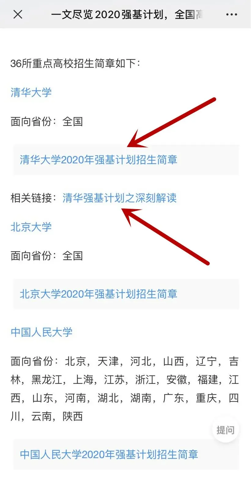 首先,进入多元录取功能区后,点击进入“强基计划”板块,你可以浏览到强基计划的相关政策及报考时间节点。与此同时,我们为大家整理了目前36所强基计划招生院校的招生信息,招生省份一目了然。