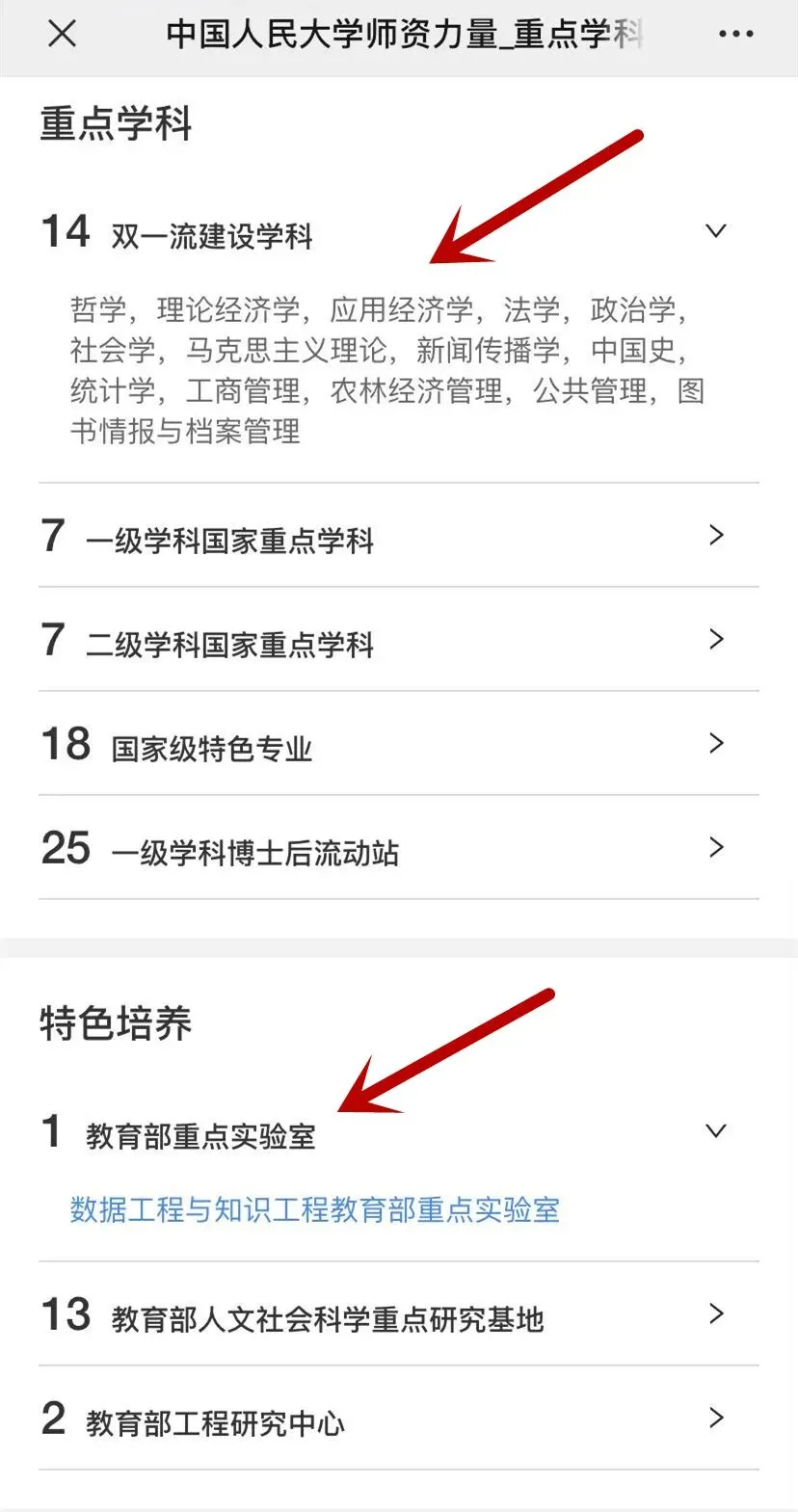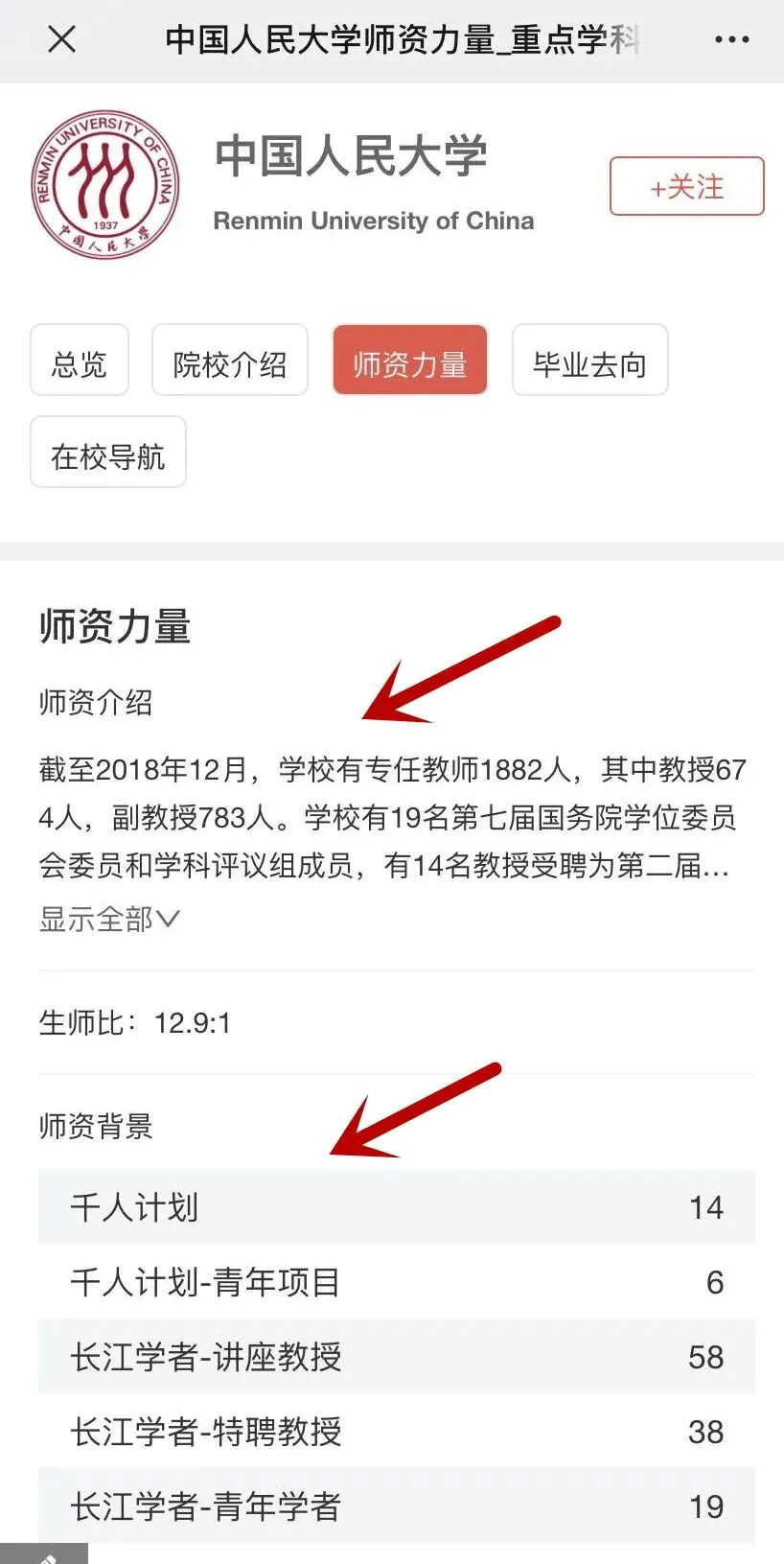 点击【师资力量】,也可以直接了解到院校的师资背景和重点学科。