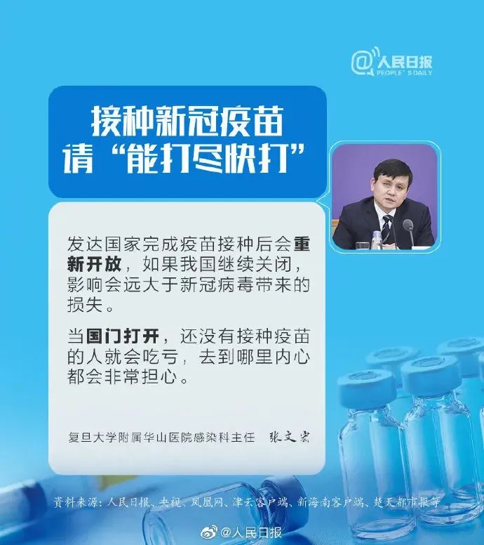 近来,钟南山、吴尊友、张文宏等专家建议疫苗能打尽快打。目前全国累计接种新冠疫苗超1.1亿剂次,然而由于我国人口基数大,离真正形成免疫屏障仍有相当大的空间,钟南山称中国绝大多数人还没免疫。