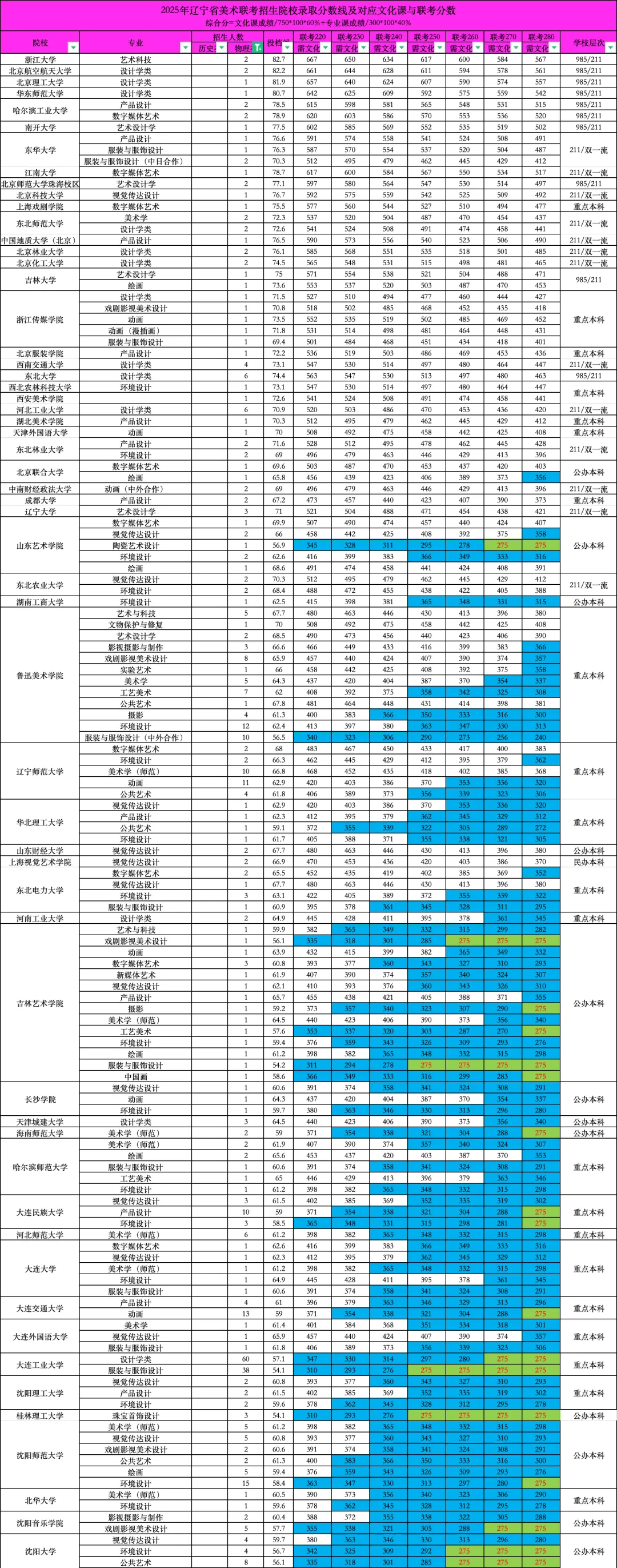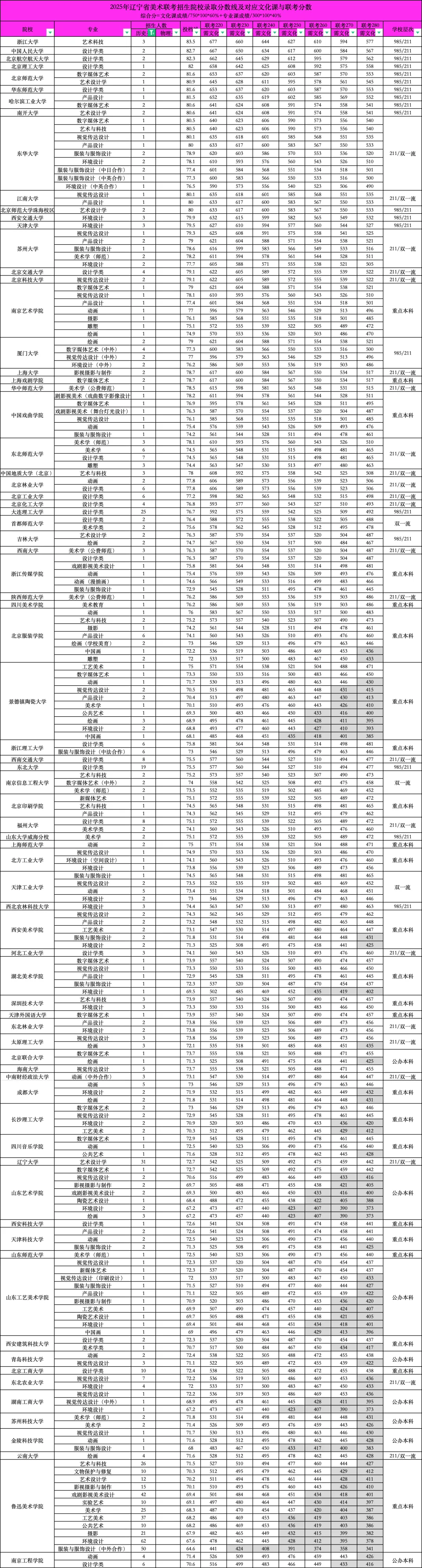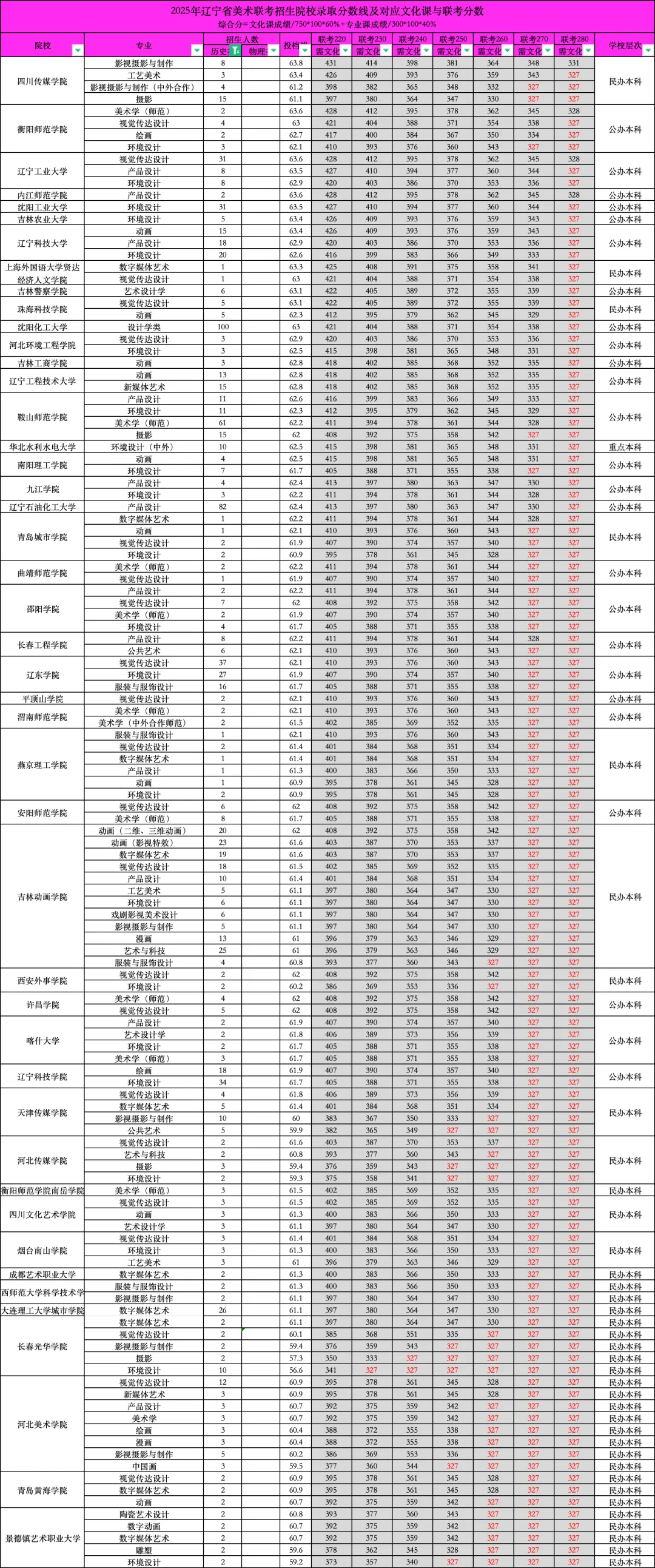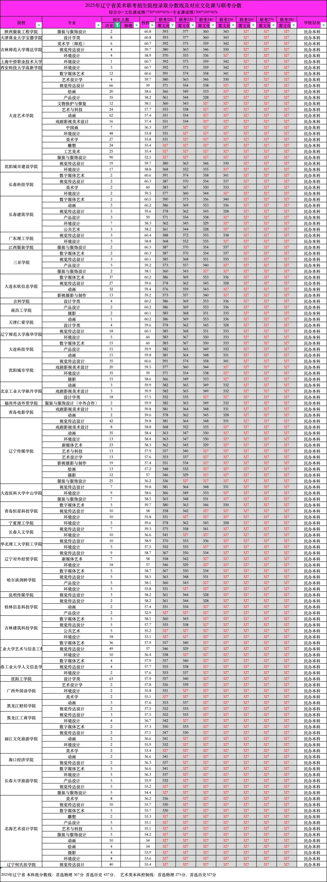 广东省2025年美术联考招生院校及专业录取分数线对应文化课及专业课成绩(2026届参考)
