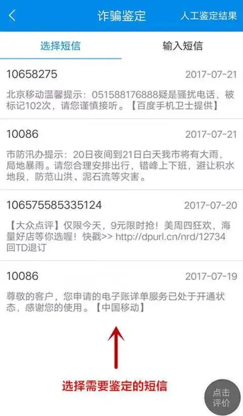 第三步:选择您需要鉴定的短信,系统会自动检测。