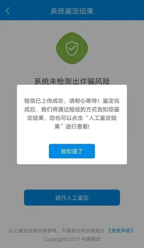 如果想进一步鉴定,可以选择人工鉴定,系统会显示人工鉴定结果。