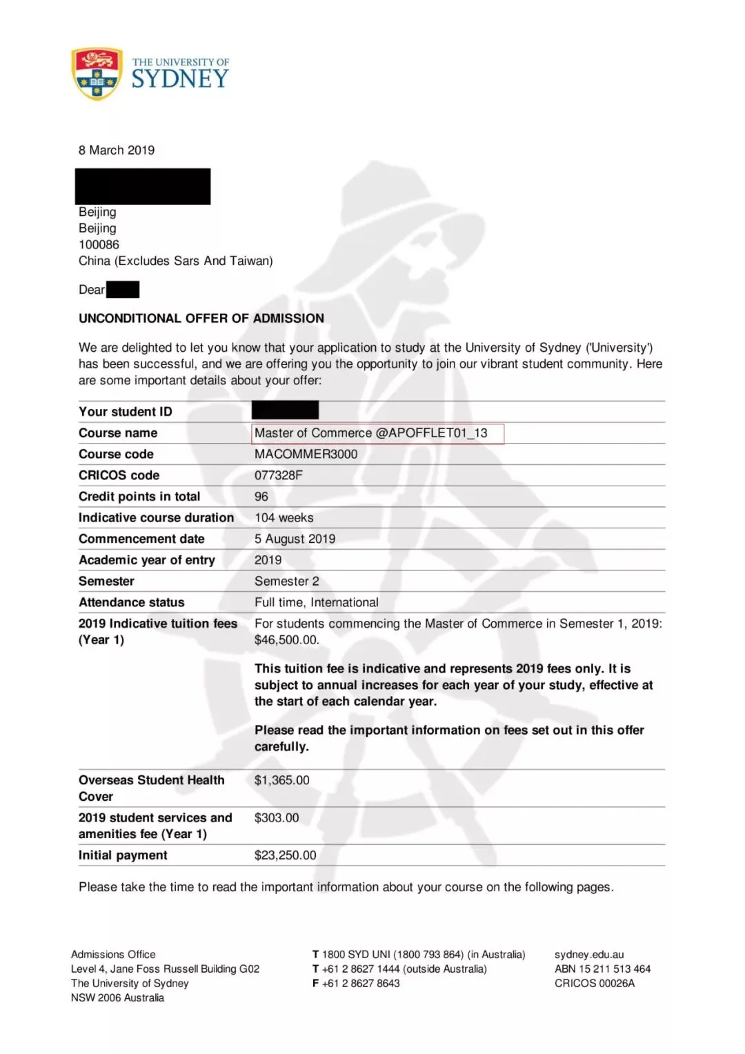 之后我就顺利地拿到悉尼大学的条件COE啦。