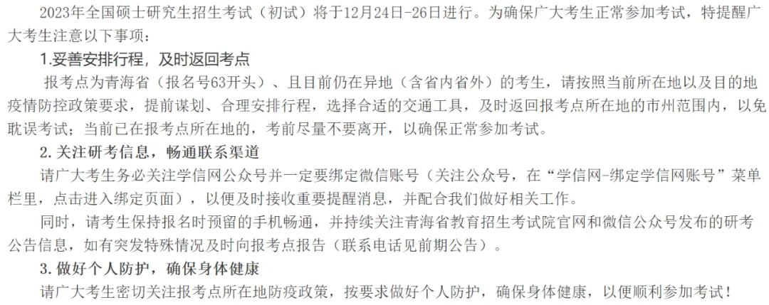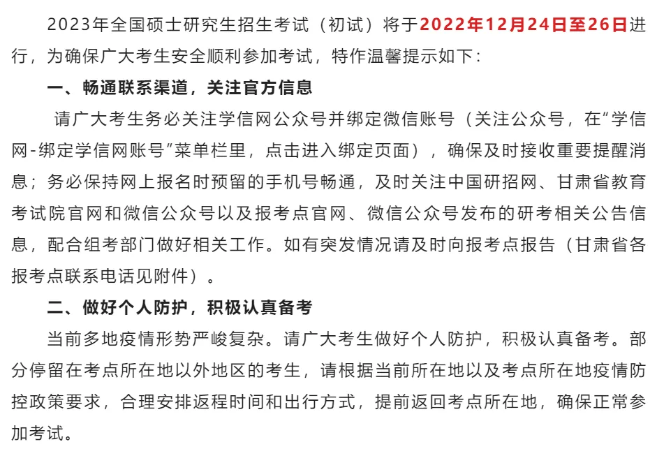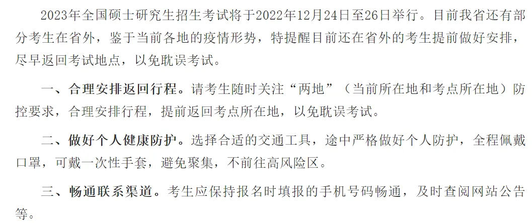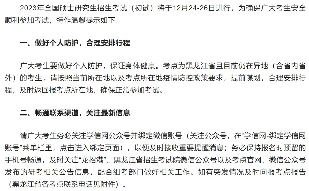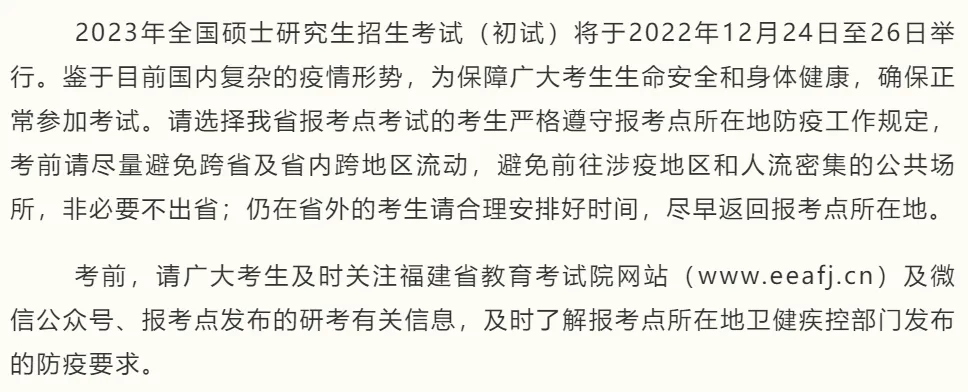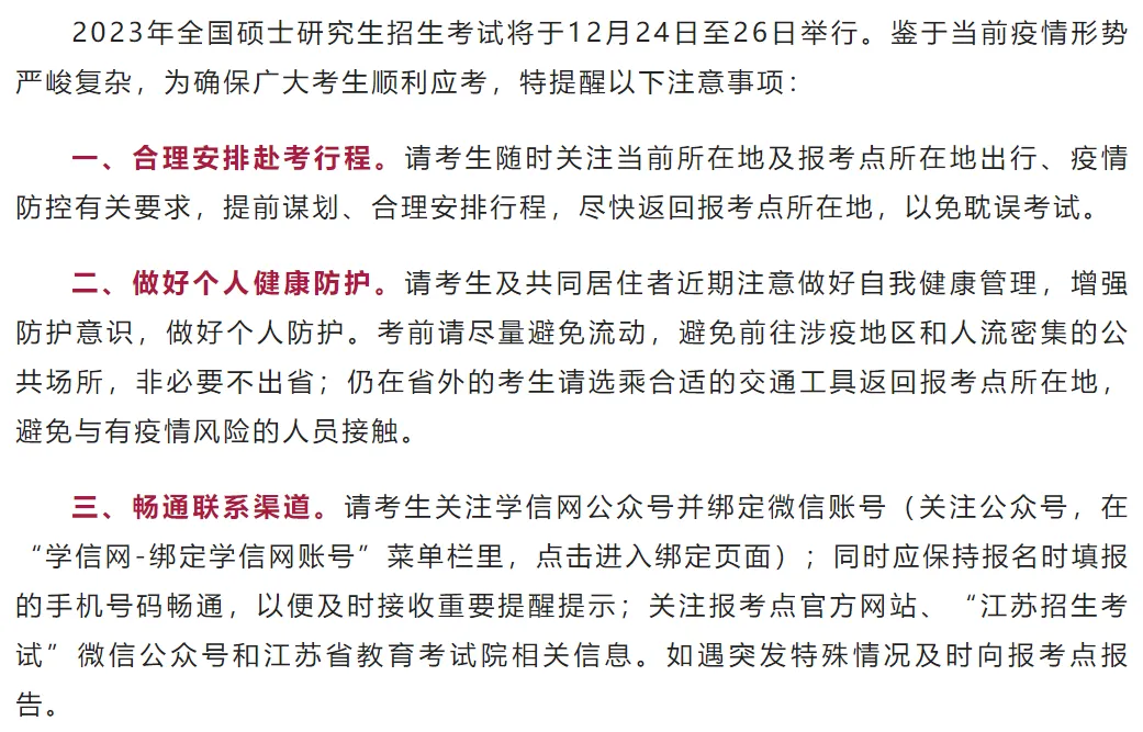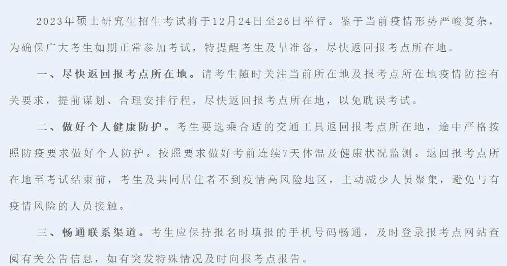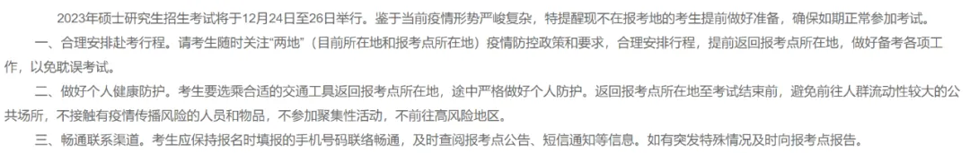 2023年全国硕士研究生招生考试将于12月24至26日举行。