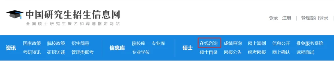 1️⃣打开研招网,点击“在线咨询”。