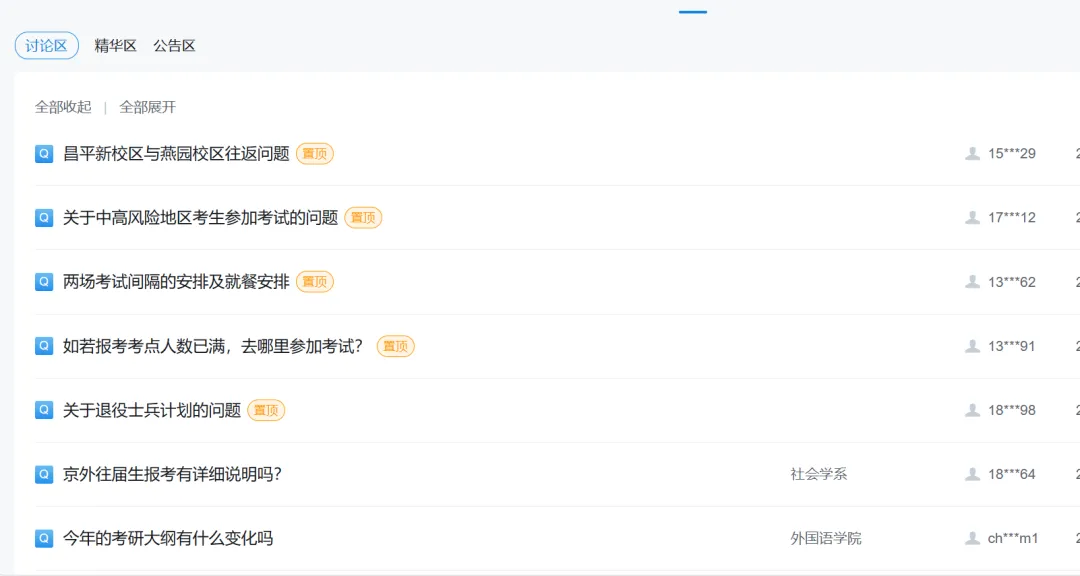 所以在提问之前,一定要先去官网看看招生简章以及其他公告,不要重复提问。比如国家线什么时候公布?初试成绩什么时候出?什么时候复试?这都还没考试!现在问太早了。如果自己的问题在咨询期间没有被解答,那可以直接打电话咨询院校的招生办老师,学校官网一般会提供联系方式。大家有什么不确定的问题,都可以借这个机会搞清楚,比百度靠谱。
