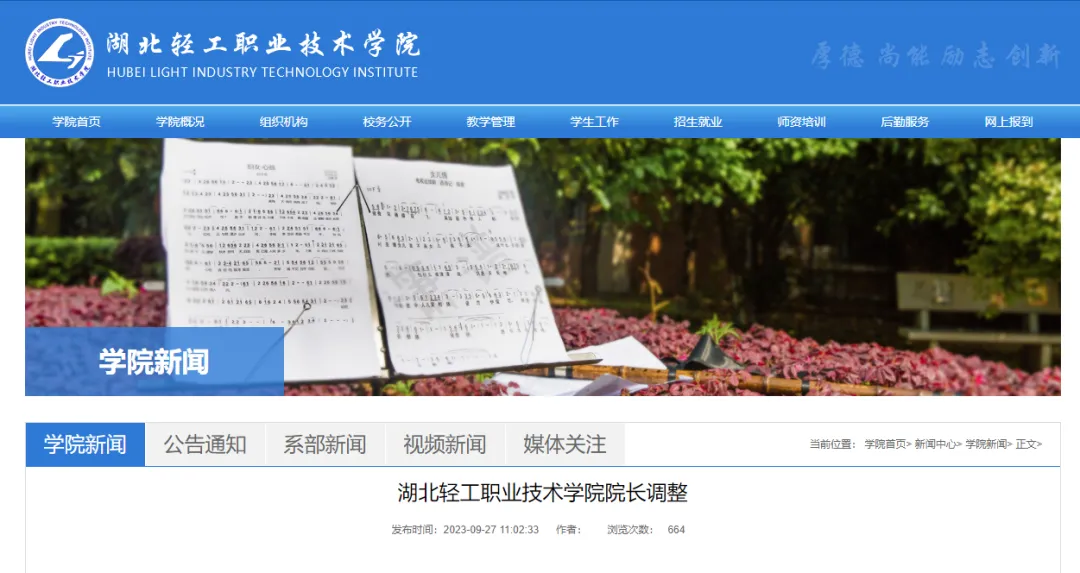 2023年9月27日上午,湖北轻工职业技术学院党委召开干部大会。根据厅党组安排,厅干部人事处段旭辉同志宣布了厅党组决定:夏光蔚同志任湖北轻工职业技术学院党委副书记、院长。会议由厅干部人事处副处长魏立超同志主持。学校领导班子成员、中层干部和教师代表参加会议。