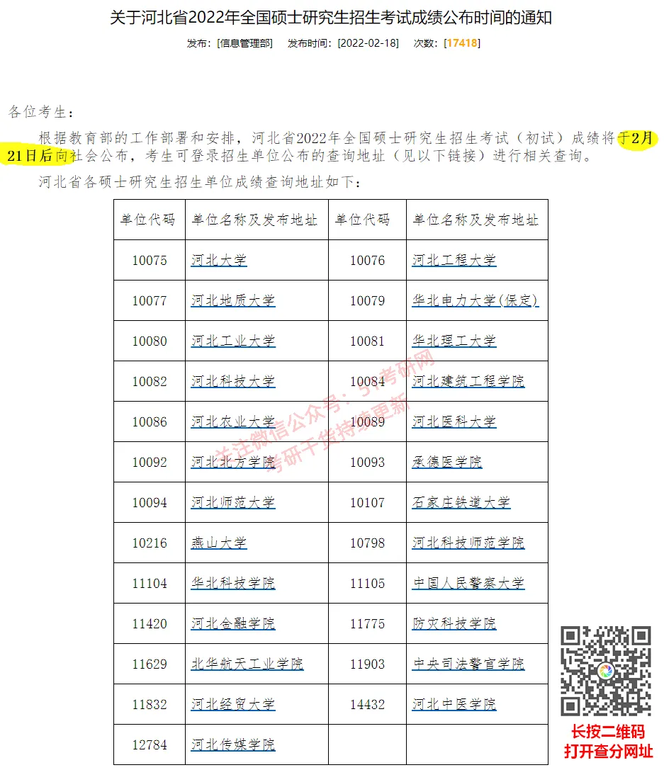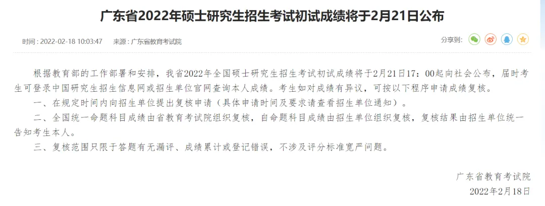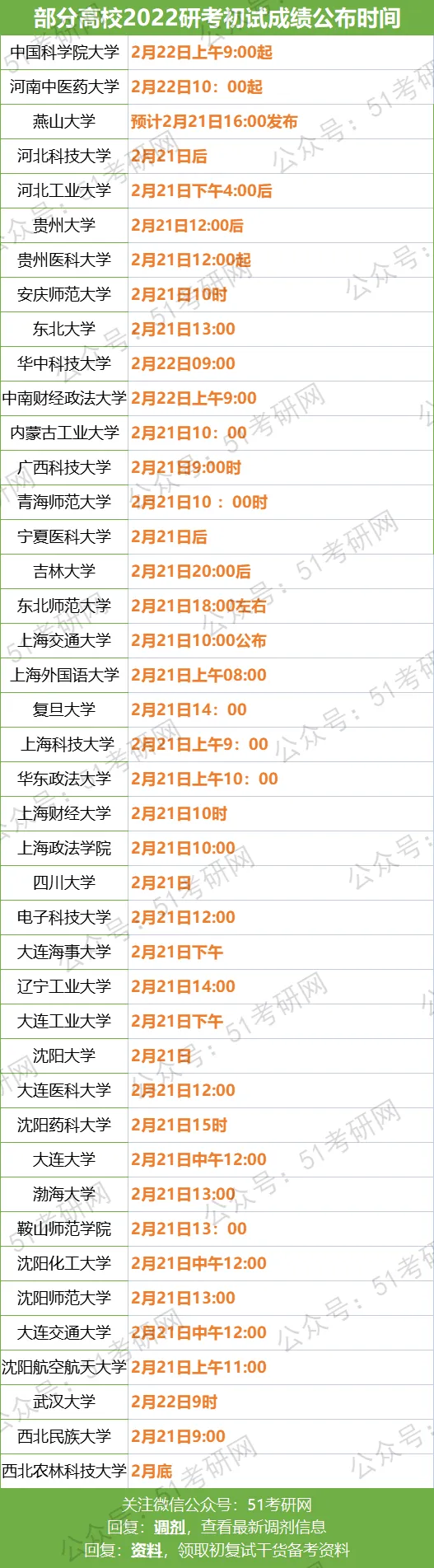 ps:如果你报考院校还未发布通知,可参考同省其他高校初试成绩公布时间,一般同一省份的时间基本一致。