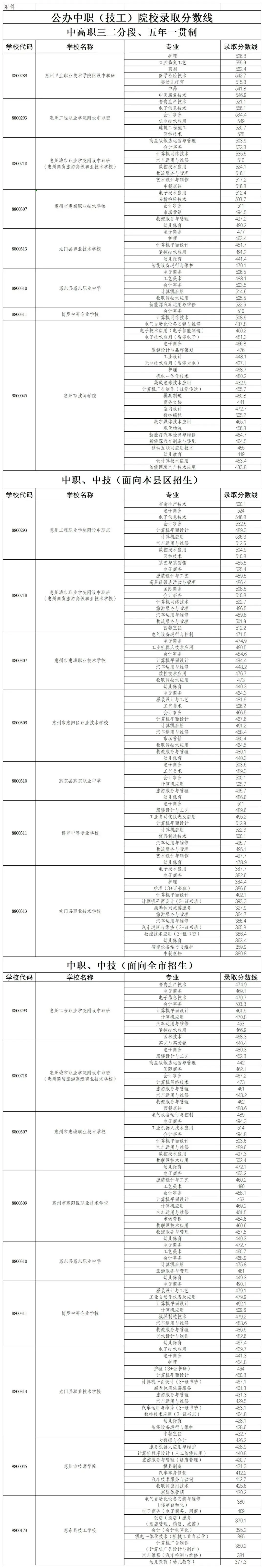 >惠州中职(技工)学校录取分数线来了!