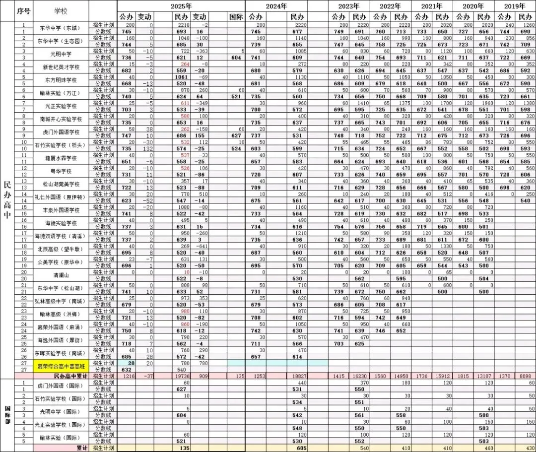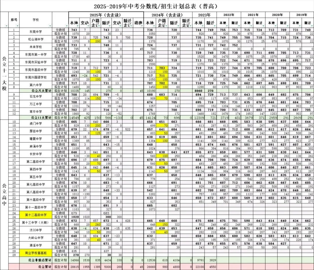 >2025年~2019年东莞市中考录取分数线和招生计划