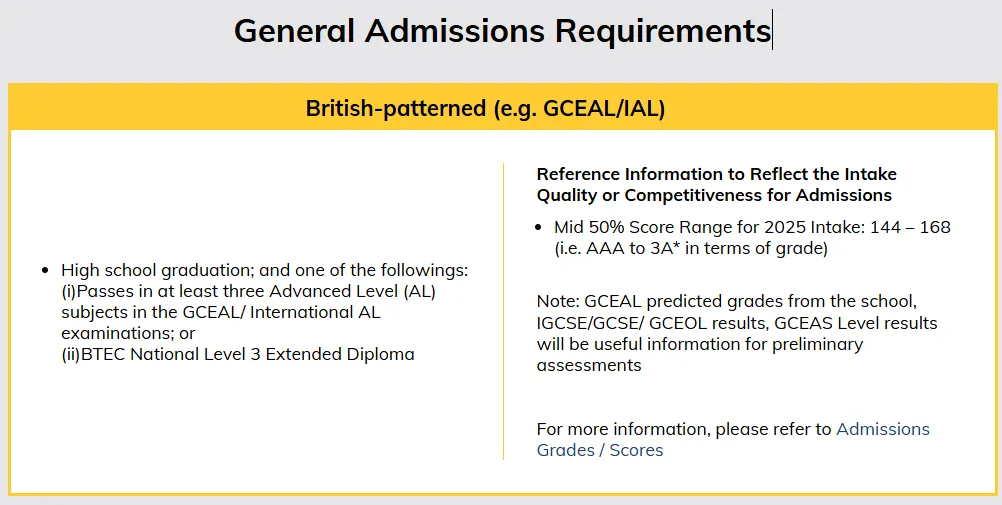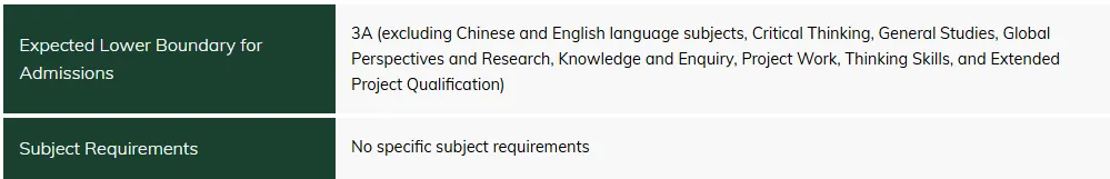 香港科技大学对A-Level的要求较高,一般期望申请者至少有3门A-Level科目,2025入学50%录取者成绩是AAA-3A*。
