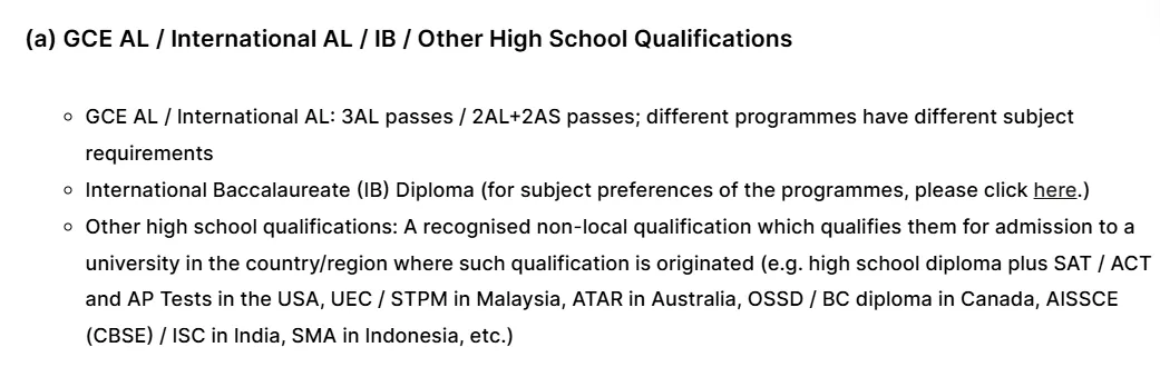 26Fall港大A-level/IB/AP各项,最新要求如下: