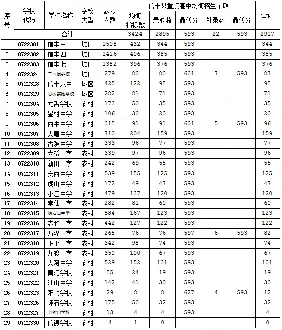 1.信丰县2022年重点高中均衡招生录取情况