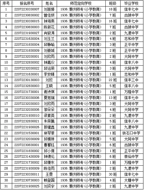 2.2022年信丰县“定向培养乡村教师计划”(小学教育)入围体检名单