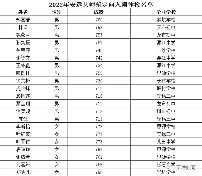 3.2022年安远县师范定向入围体检名单: