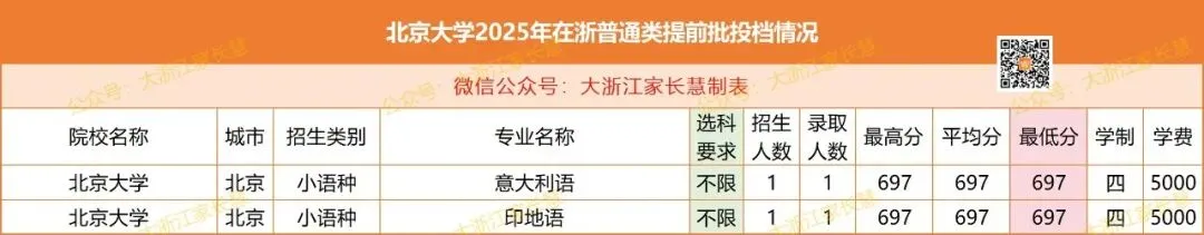 根据2025最新的平行投档数据,北京大学2025年在浙江