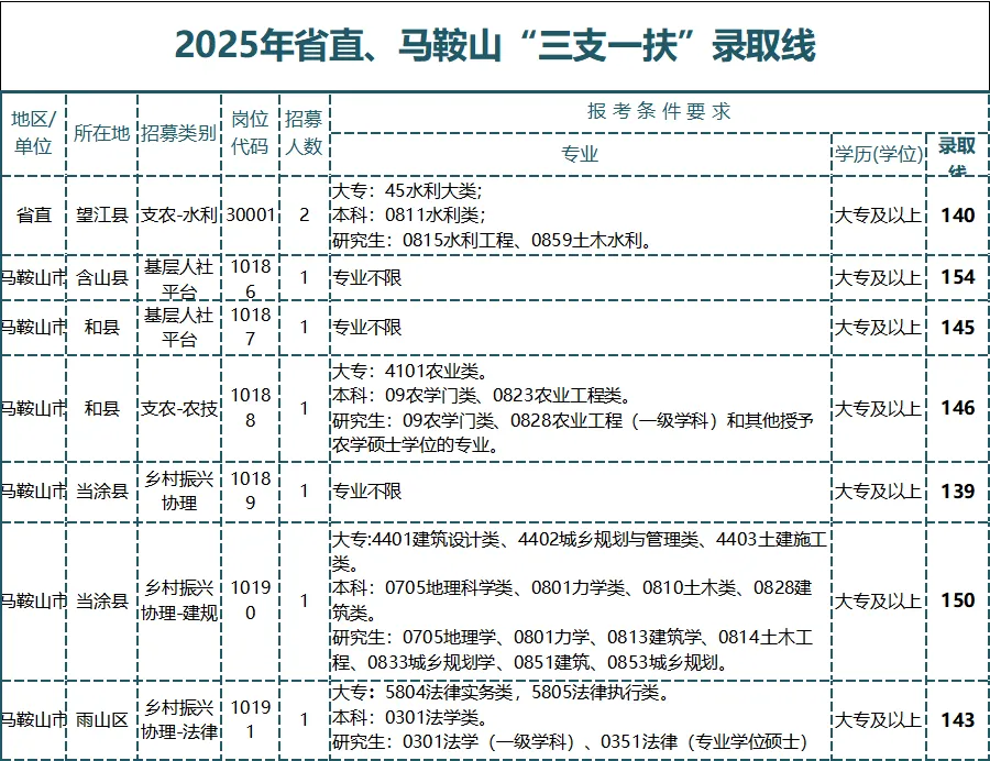 2025年马鞍山招录三支一扶人员11人,为支农与扶贫。近些年马鞍山常招支农、扶贫人员,支农一直招录。马鞍山待遇好,所以竞争也不小,入围分相对较高【20年招8人(扶贫、支农、支医、支教);21年招26人(支农、支医、扶贫);22年招15人(支农、扶贫);23年7人(支农、扶贫);24年12人(支农支医和扶贫);25年11人(支农、扶贫)】。