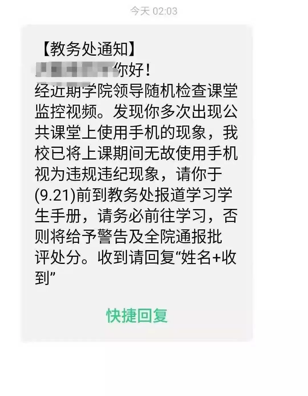 老师,我收到教务处发的短信,您看看,请一定不要处分我啊!