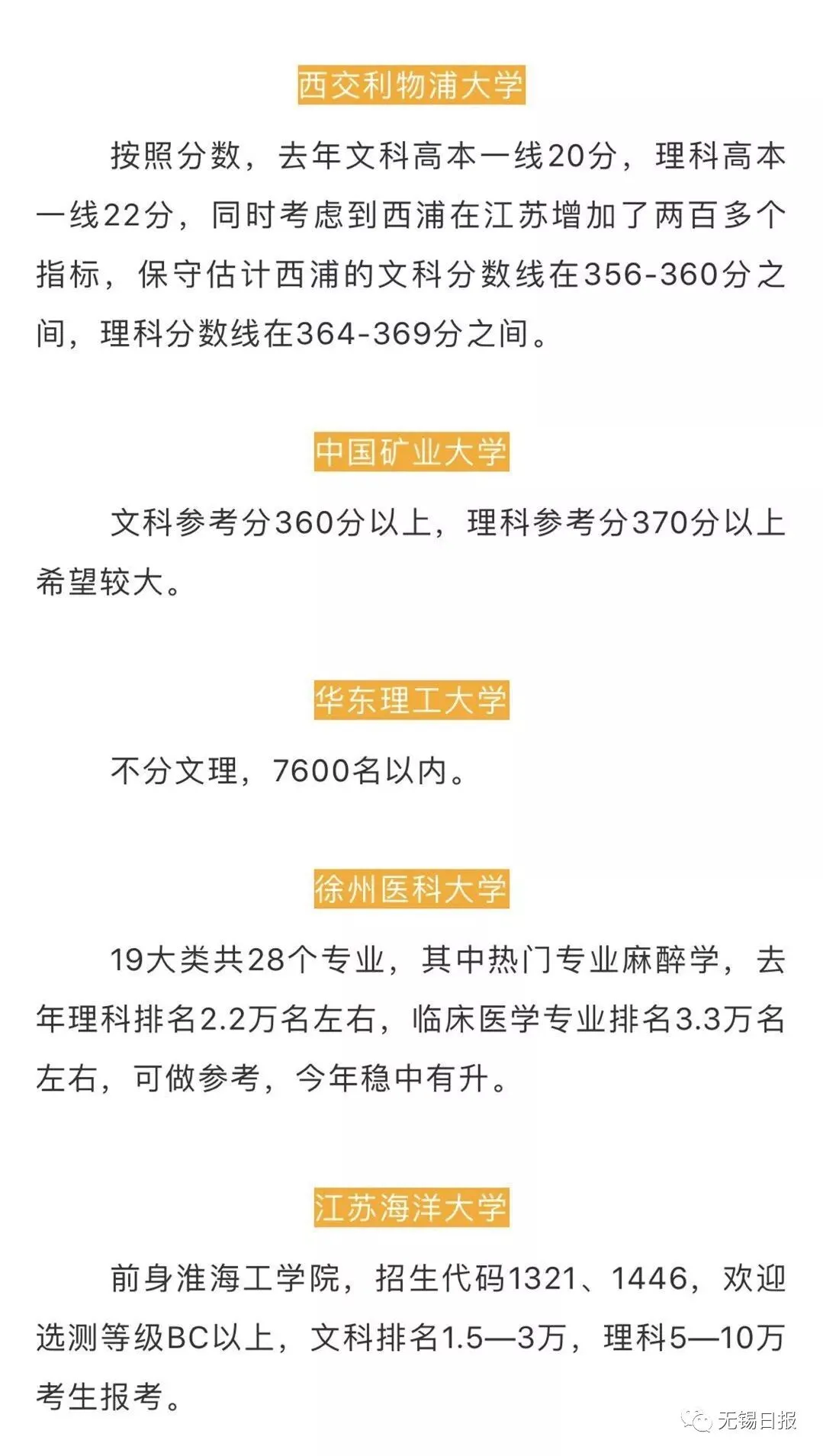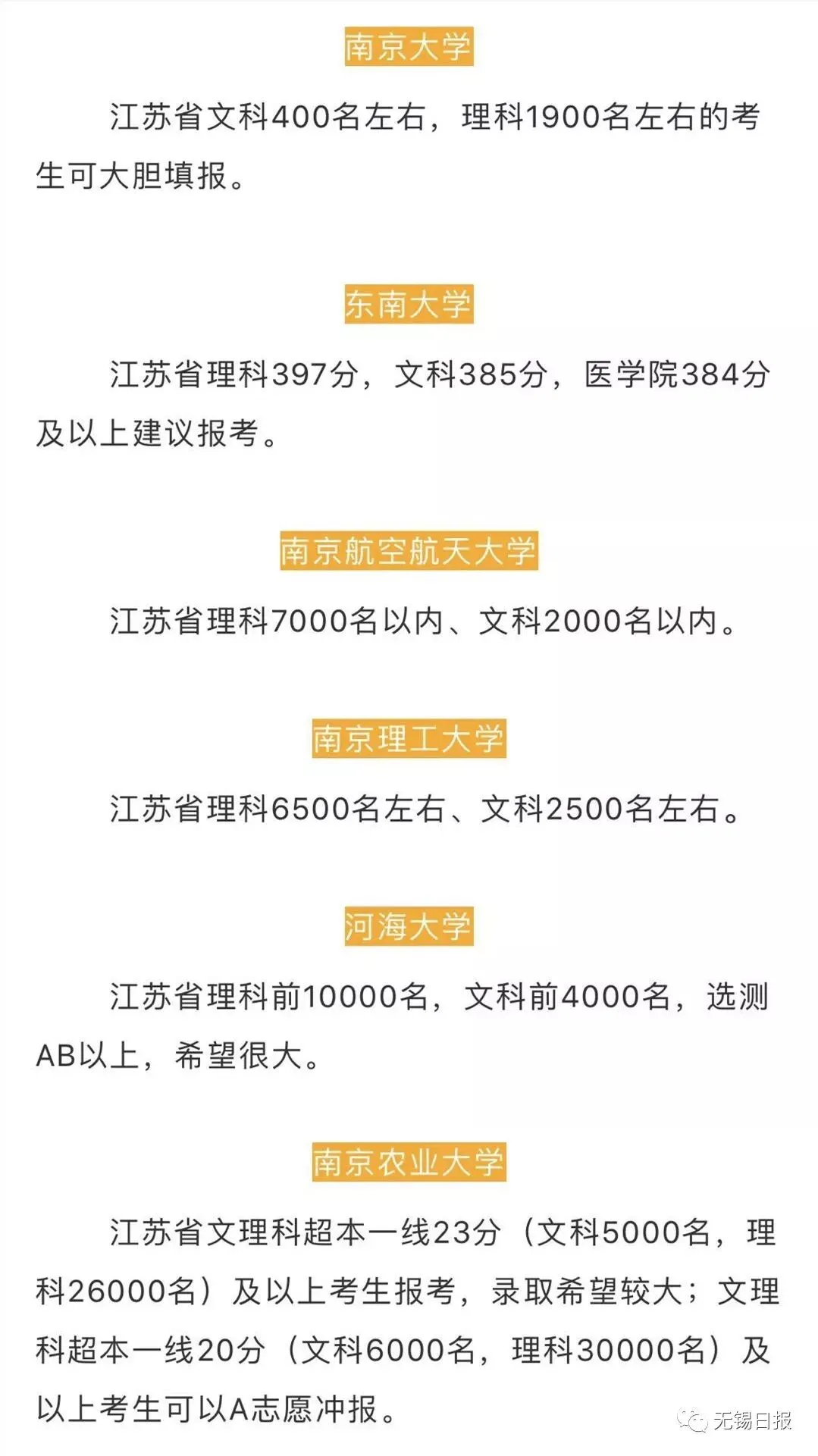 各个学校说了今年江苏招生录取预估分数线