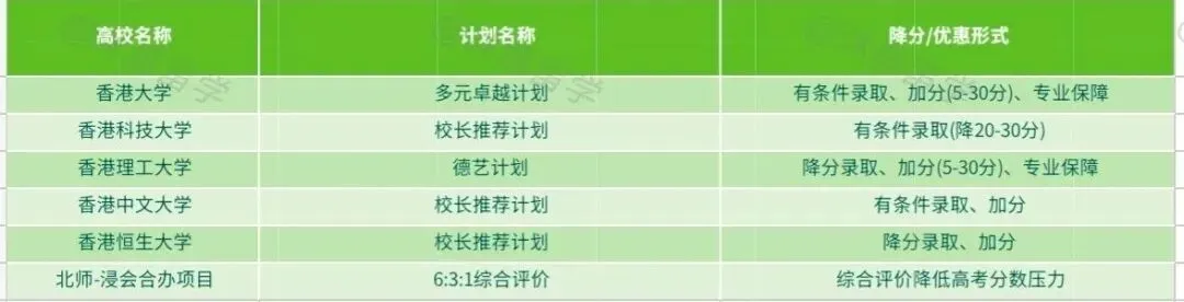 这些计划的核心优势是:提前面试、提前锁定录取资格,最高可降30分录取,直接降低高考冲刺压力——相当于给你的港校梦上了“双重保险”!