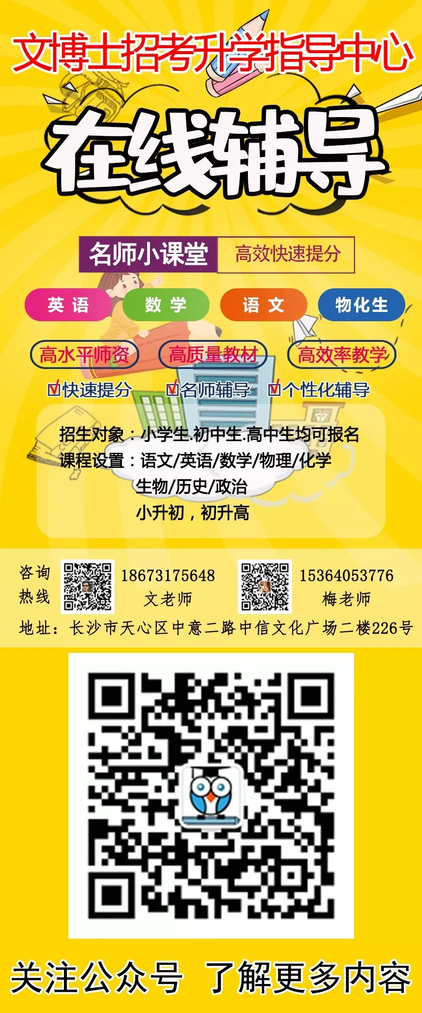 文博士招考升学指导中心同时推出了在线辅导平台,线上结合线下,为广大中小学生升学提供了更多的学习技巧,考试方法指导。名师出高徒,你还在等什么呢,快来报名吧 !