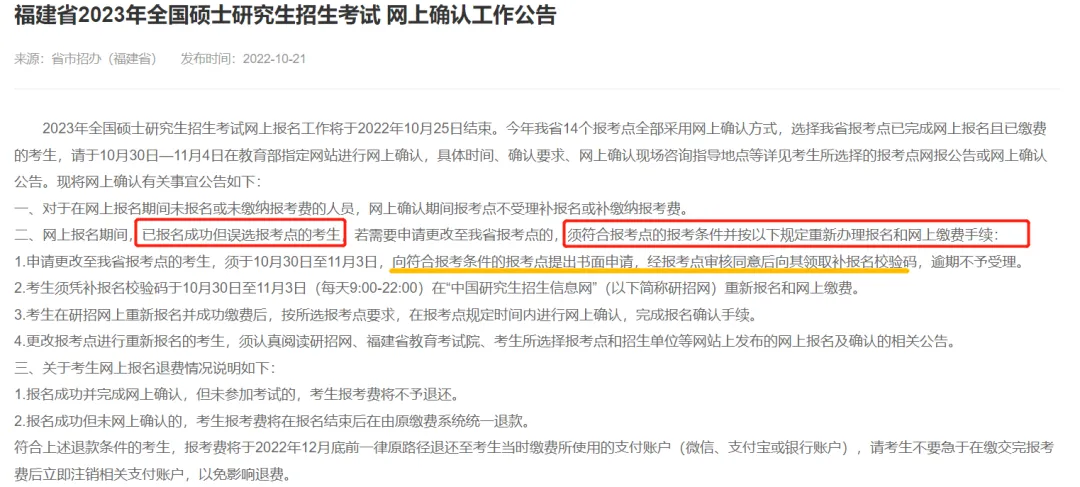 这个是最麻烦的也是最严重的一种情况,福建省去年发布公告说选错报考点需要提出书面申请,并经过报考点审核通过即可领取”补报名校验码“,然后再重新报名缴费。
