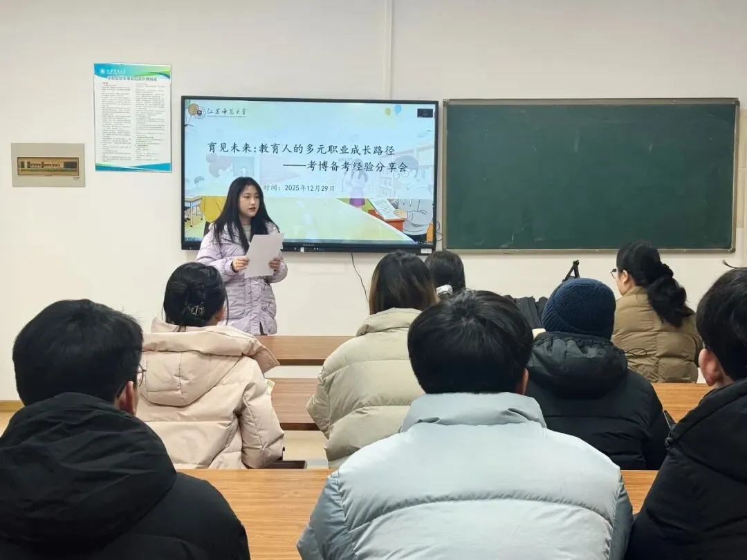 为帮助同学全面了解申请与报考博士研究生的流程与注意事项,2025年12月29日14:30,教育科学学院(教师教育学院)在13号楼419教室顺利举办“考博经验分享会”。会议邀请了2025届心理学专业优秀毕业生何月、2023级职业技术教育学专业童欣安进行分享,熊思薇主持,辅导员马雷鸣和学院部分研究生参加。