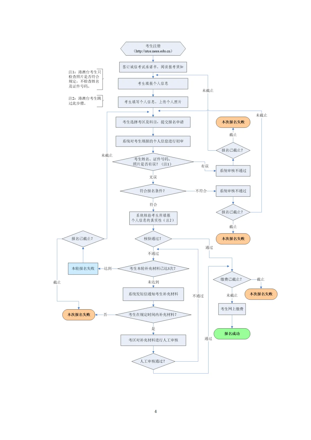 考生须在规定的时间内,登录国家“中小学教师资格考试网”(http://ntce.neea.edu.cn),按照栏目指引进行网上报名。网上报名的考生,须保证本人的报名信息真实有效且具有报名资格。不符合报名条件或信息填写错误而参加中小学教师资格考试者,后果自负。请考生务必认真阅读具体报名流程及注意事项(见附件2、3),并遵照执行。