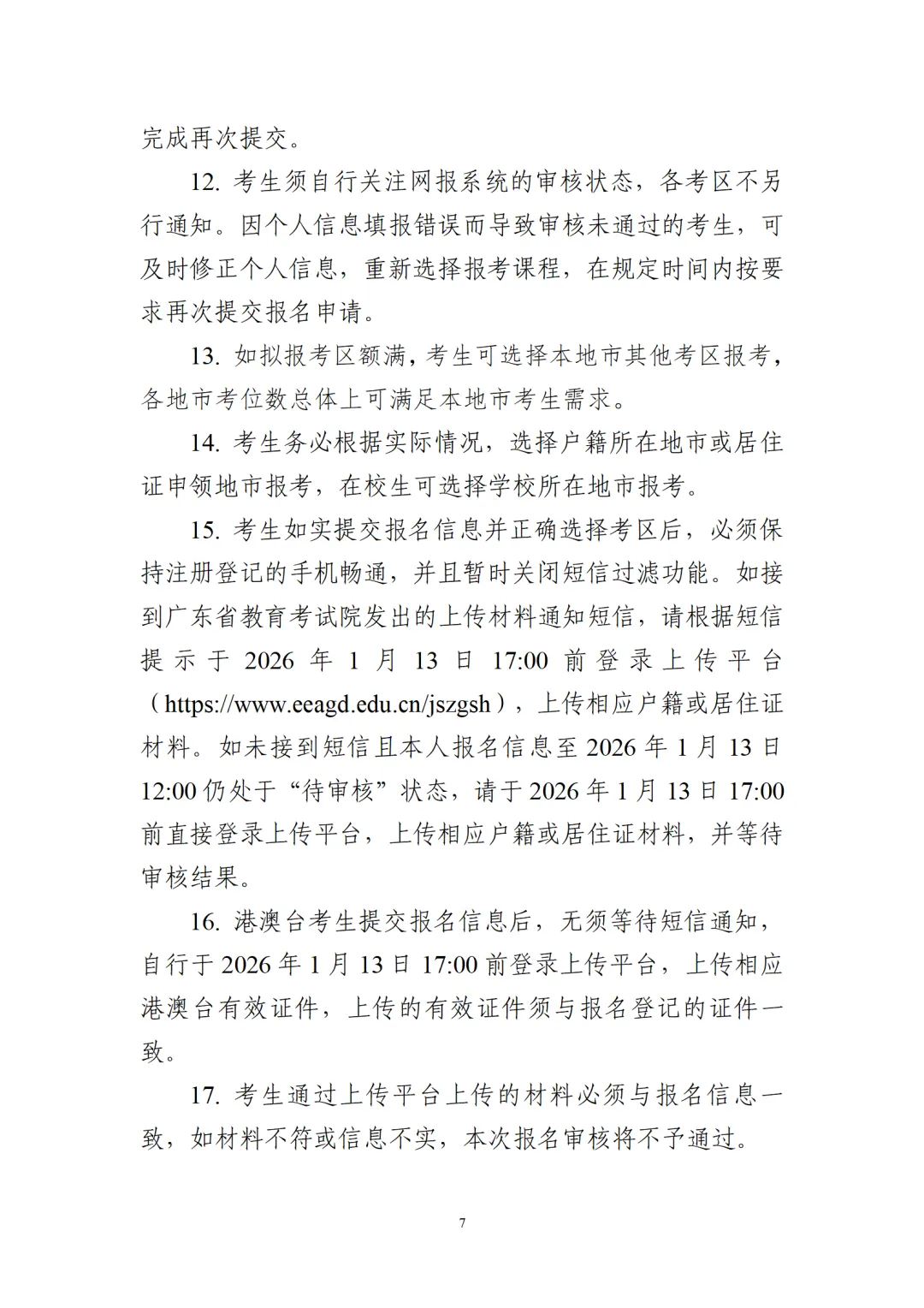 报名时间:2026年1月9日10:00至12日16:00,内地考生须选择户籍、居住证申领地或学籍所在地市所辖的考区,港澳台考生可根据实际情况选择考区;