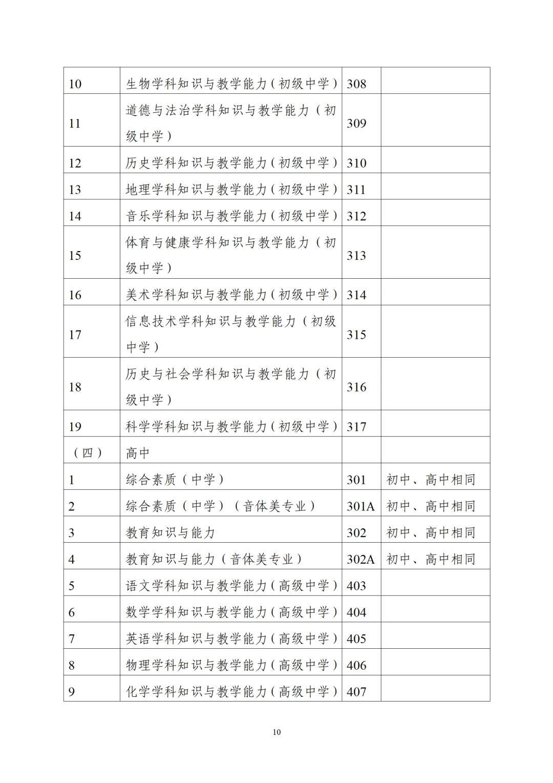 4.2026年上半年中小学教师资格考试(笔试)科目代码列表