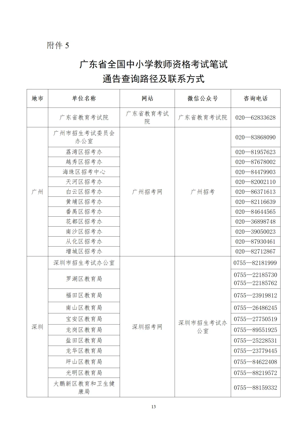 5.广东省全国中小学教师资格考试笔试通告查询路径及联系方式