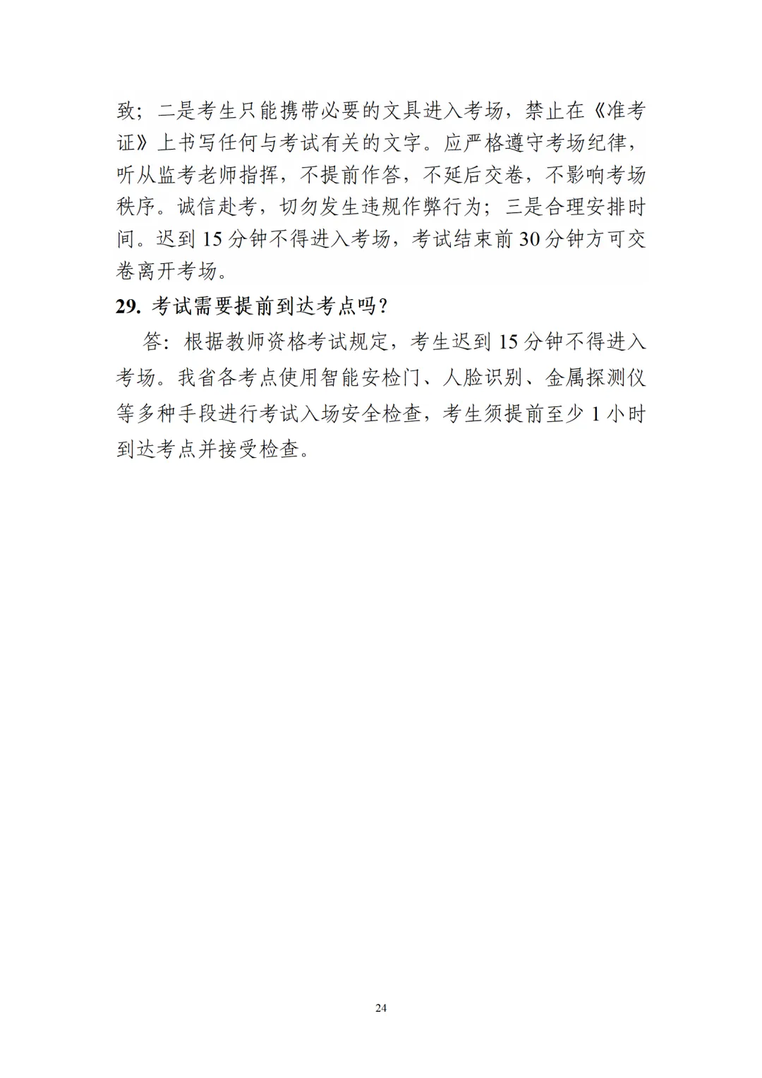 我省各中小学教师资格考试笔试考点均实行人脸识别、智能安检、金属探测等入场检测方式,考生打印准考证后,应及时查阅考点地址,合理规划路线,确保提前到达考点,并配合做好入场身份核验与相关检测。