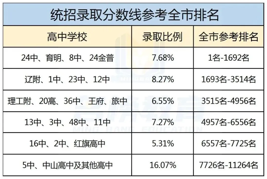统招录取分数线超700分以上的2024年大连各梯队高中,录取比例及参看全市排名区间为(数据仅供参考,指标生请参考校内指标控制线对应校排名及市排名):