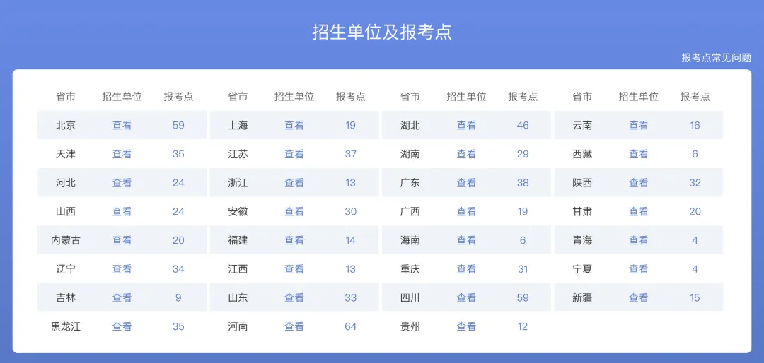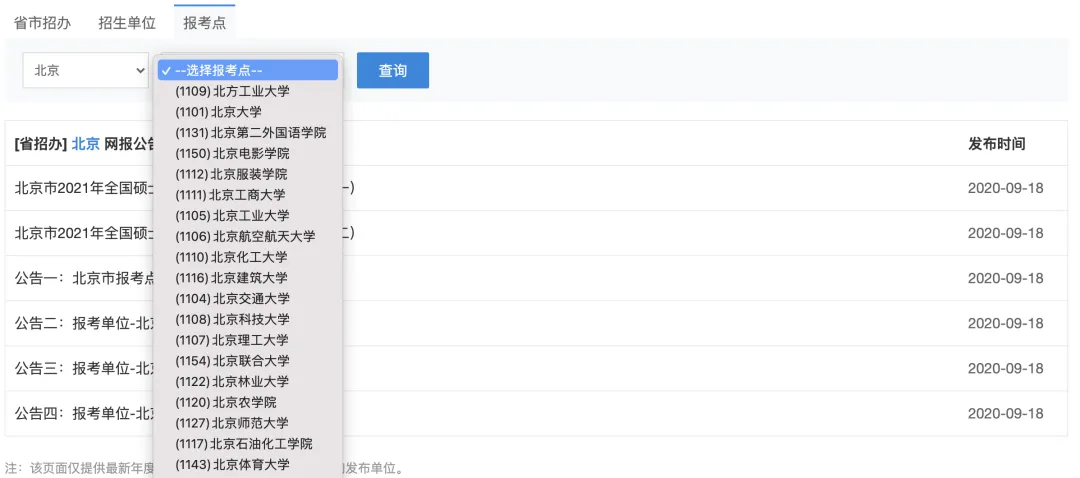 各招生单位以及报考点的汇总,同学们后续可以在这上面寻找招生单位的通知。