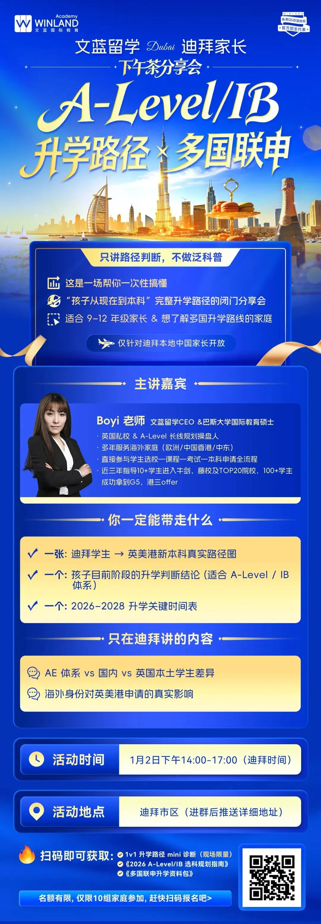 1月2日迪拜家长下午茶讲座(线下):扫码预约即可报名锁位!