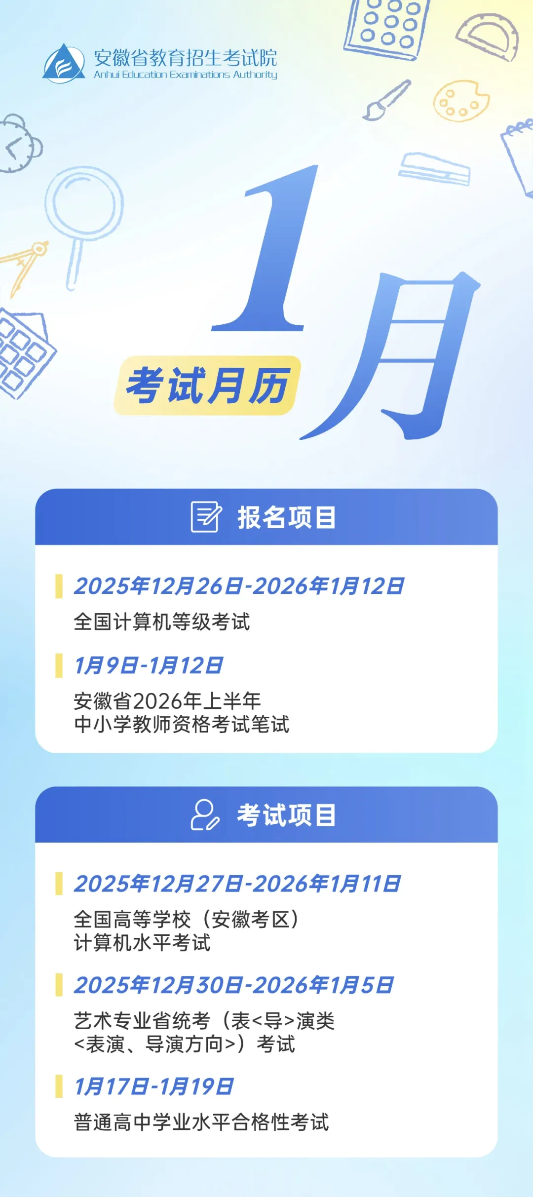 >考试月历:2026年一月,有哪些重点考试!请大家关注