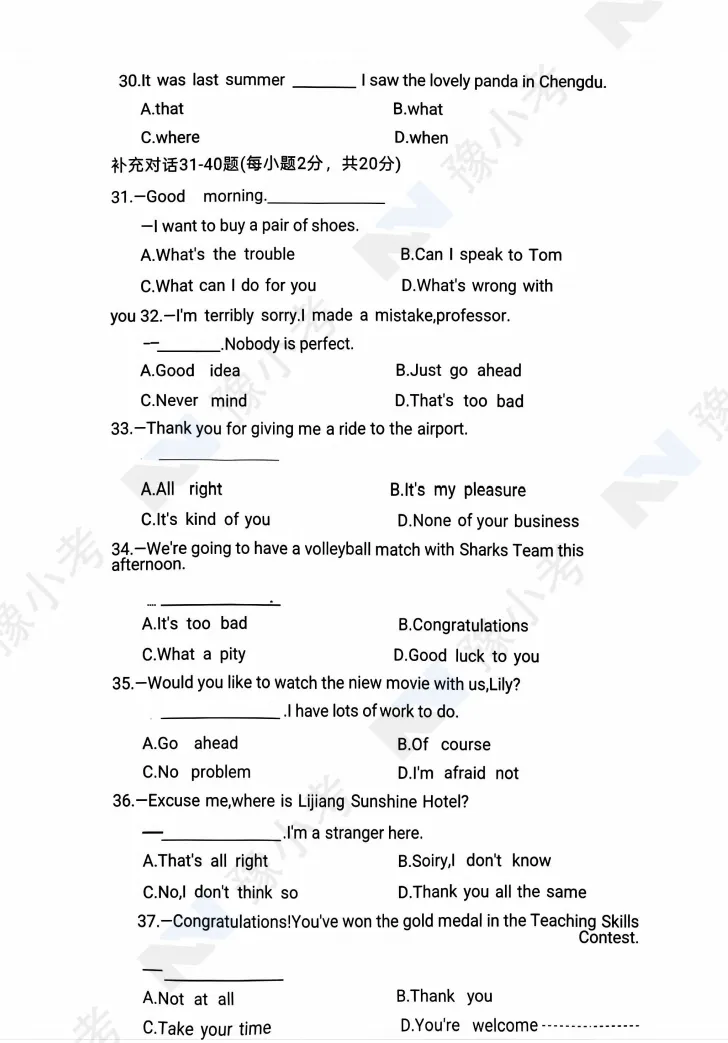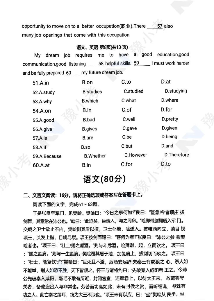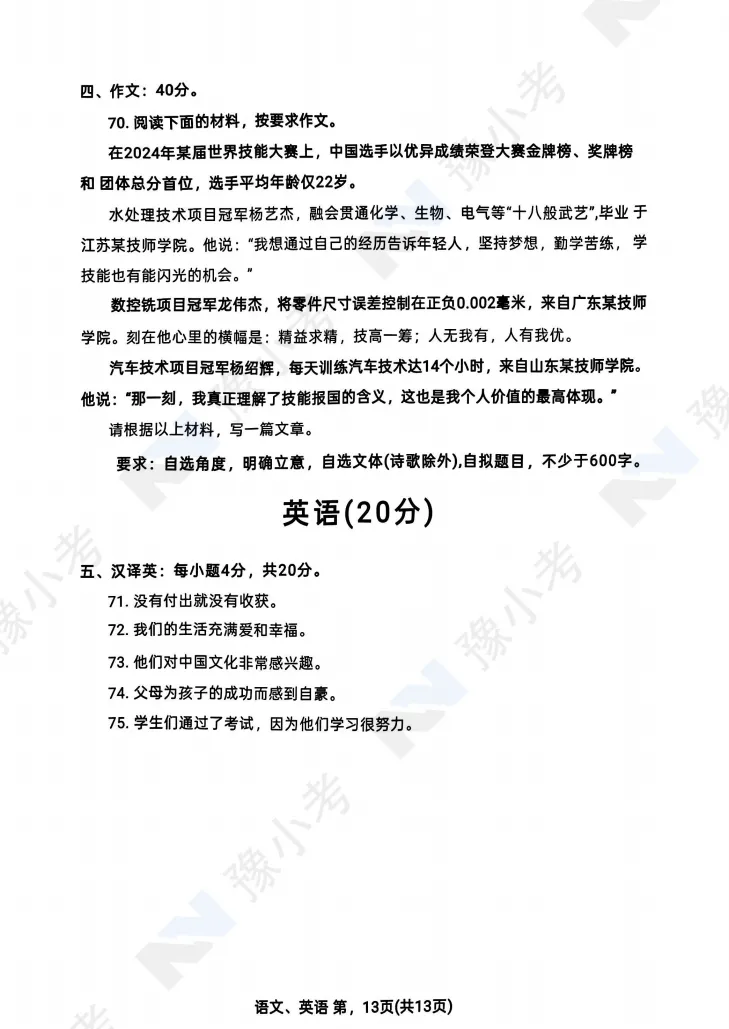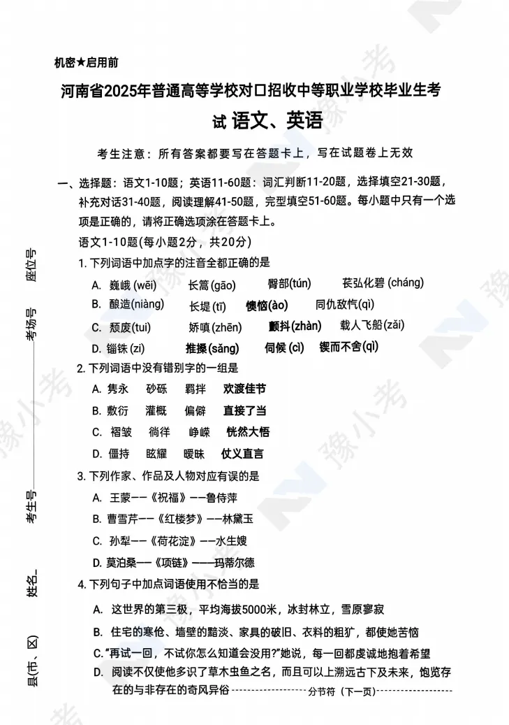 2025年河南省对口升学考试真题试卷”文化课+专业课+专业基础课“试卷扫码领取