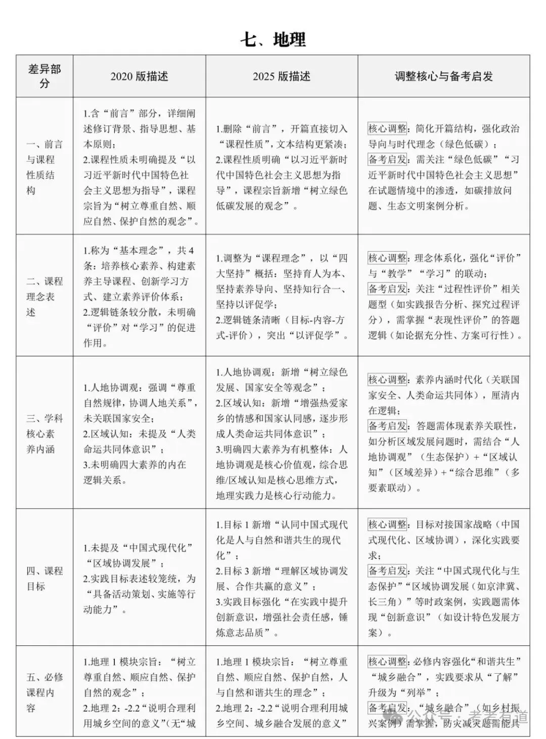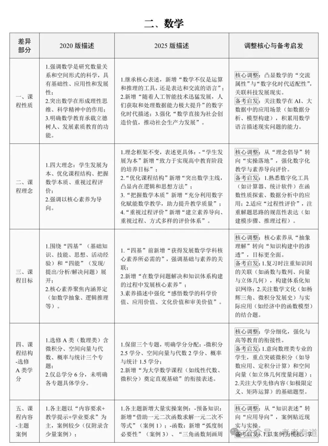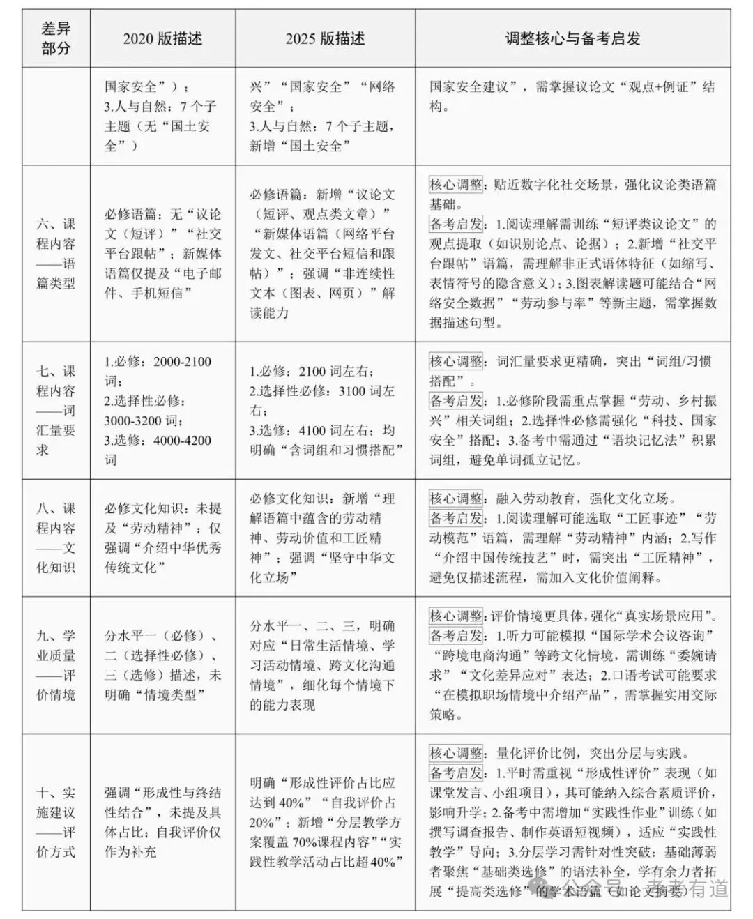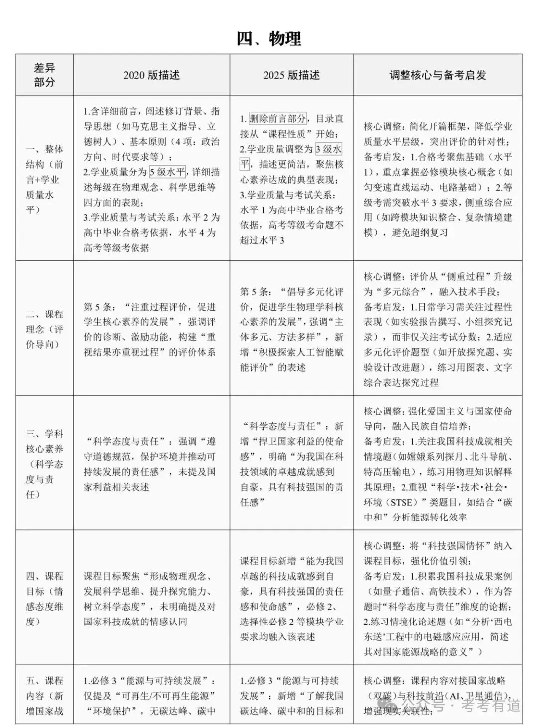 现将《普通高中课程标准(2025年修订版)》与《普通高中课程标准(2020年修订版)》核心变化对比表分享给我省师生,大家可结合《普通高中课程标准(2025年修订版)》原文一同研习。