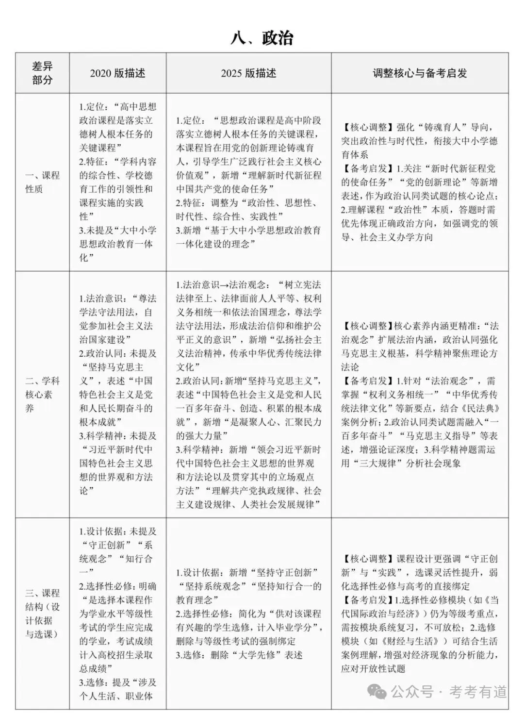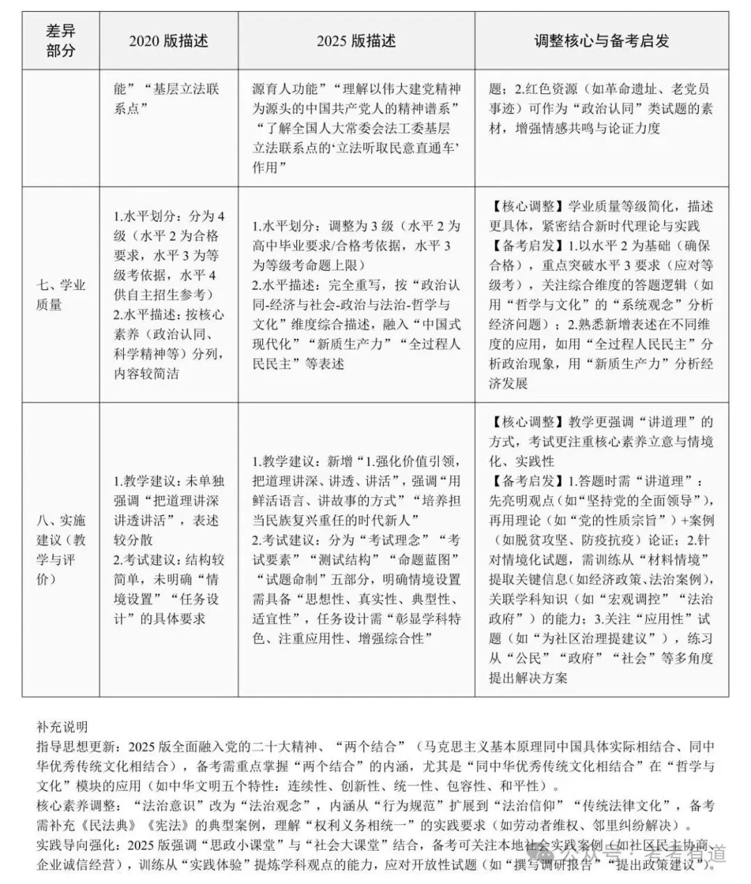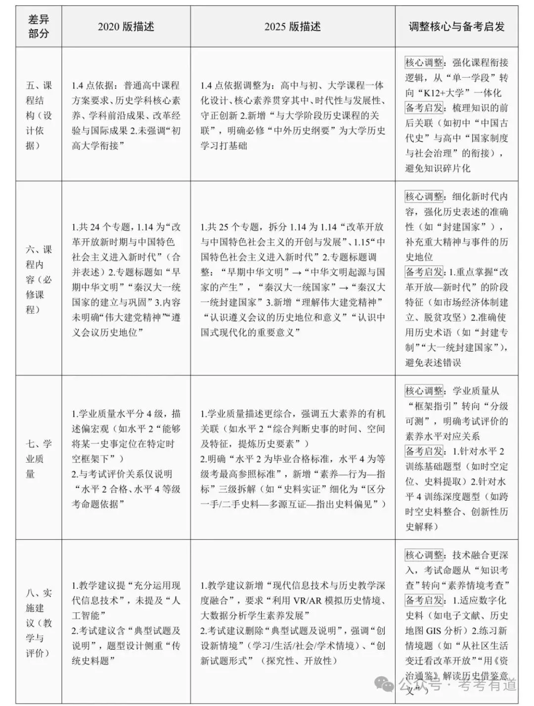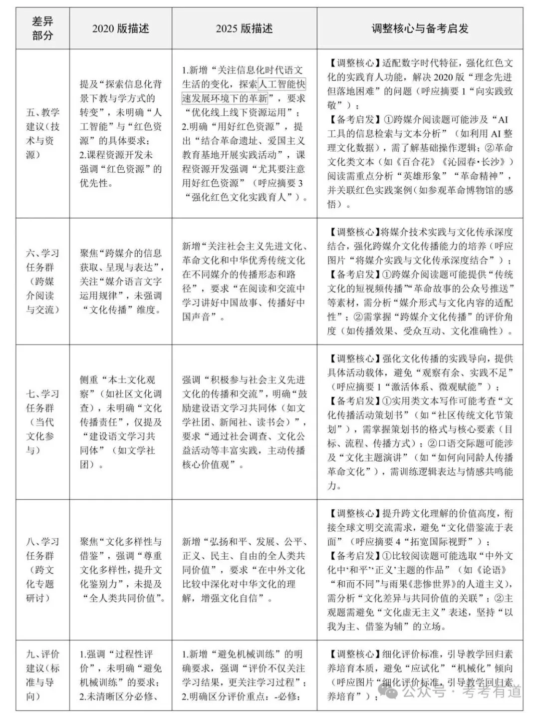 现将《普通高中课程标准(2025年修订版)》与《普通高中课程标准(2020年修订版)》核心变化对比表分享给我省师生,大家可结合《普通高中课程标准(2025年修订版)》原文一同研习。